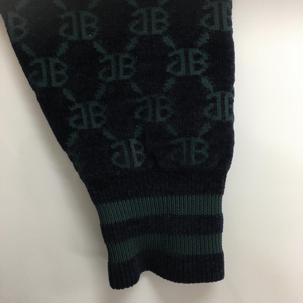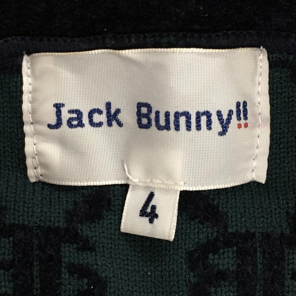【超美品】ジャックバニー ニットカーディガン ネイビー×グリーン ロゴ総柄 ブルゾン メンズ 4(M) ゴルフウェア Jack Bunny