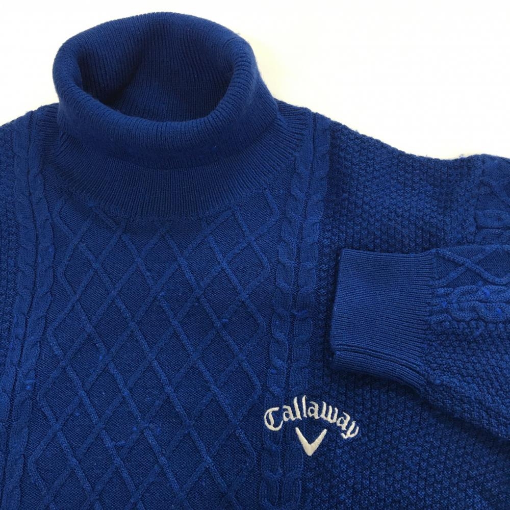 キャロウェイ タートルネックセーター ブルー ケーブル編み ニット ウール混 メンズ LL ゴルフウェア Callaway