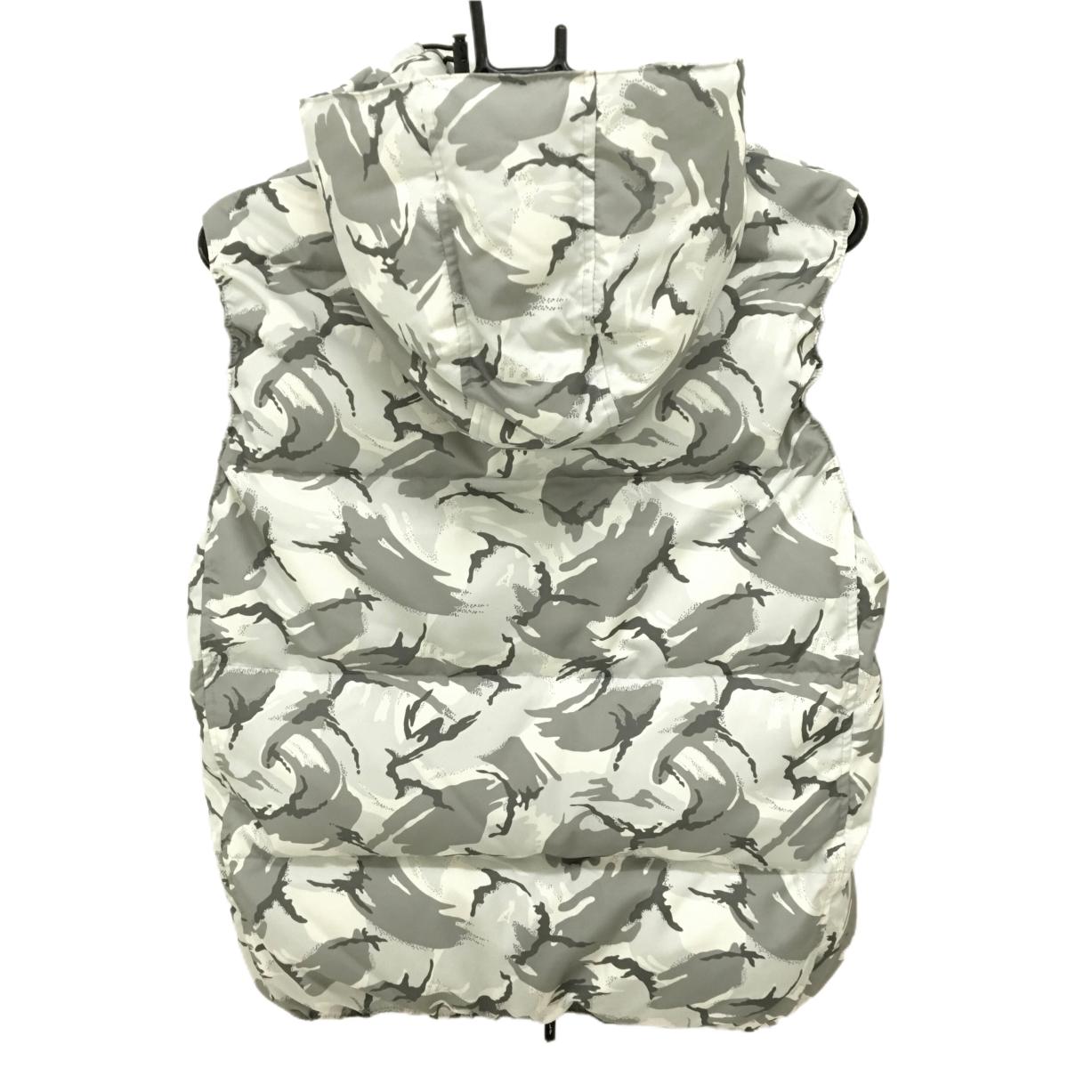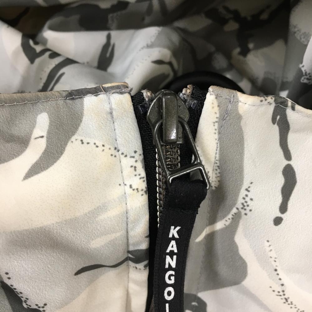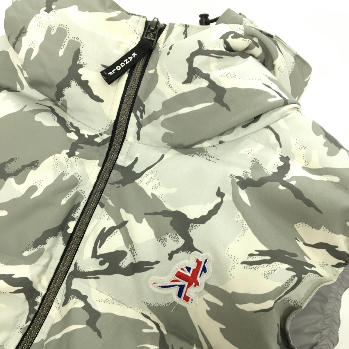 カンゴルフ フート付ダウンベスト 白×グレー カモフラ風 迷彩 レディース M ゴルフウェア KANGOLF
