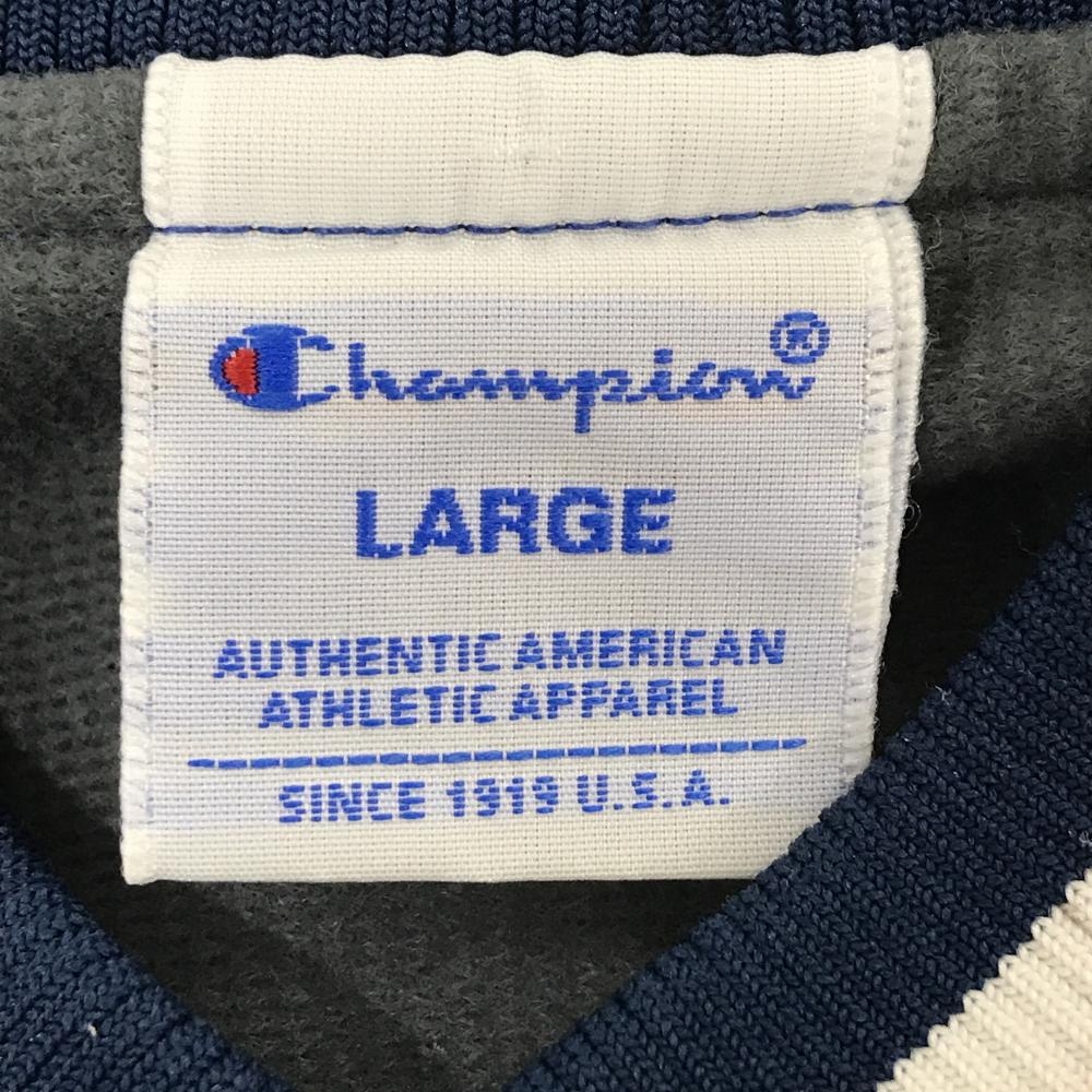 チャンピオン ナイロンスニード ブルー×白 裏微起毛 Vネック ブルゾン レディース LARGE ゴルフウェア Champion