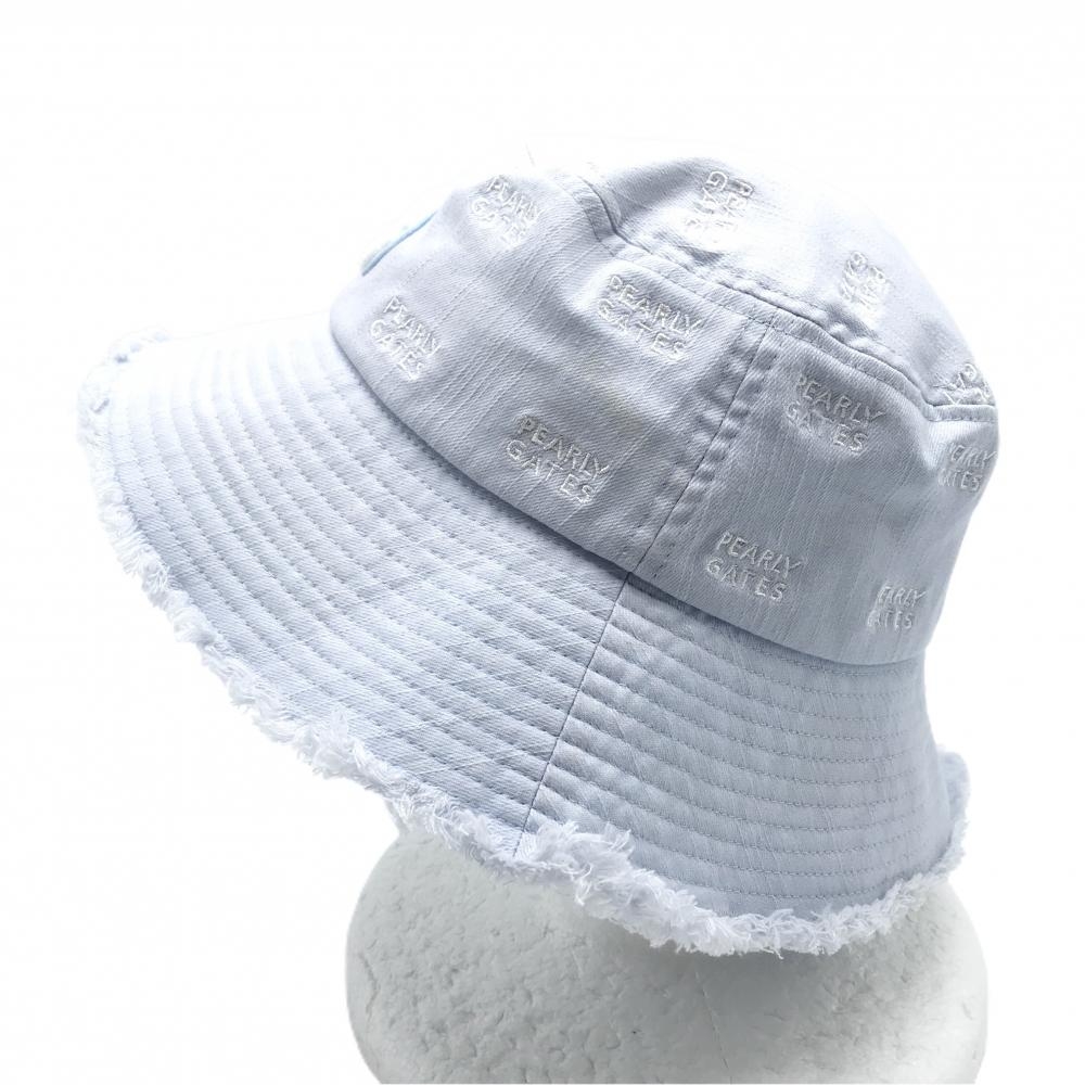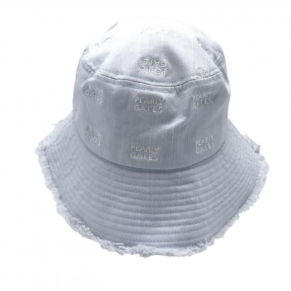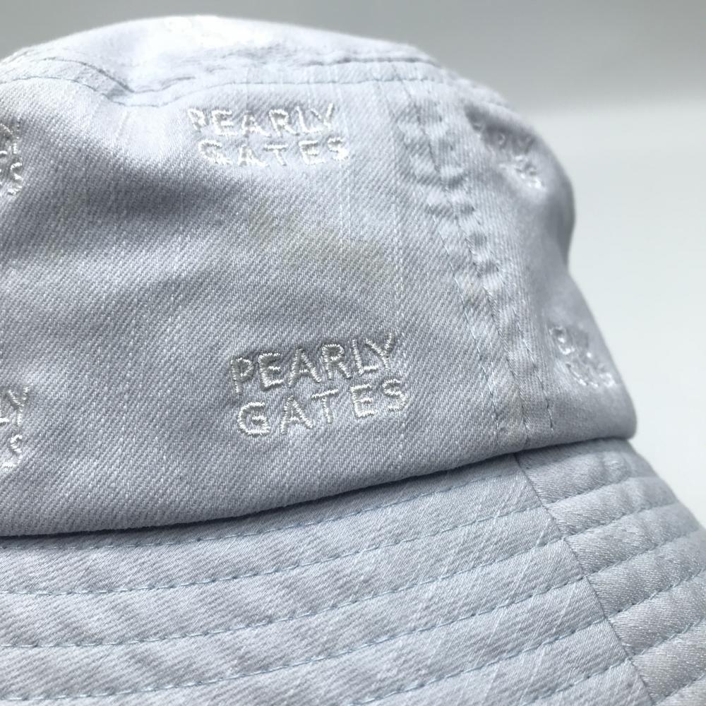 パーリーゲイツ ハット ライトブルー×白 ロゴ刺しゅう総柄 FR ゴルフウェア 2023年モデル PEARLY GATES