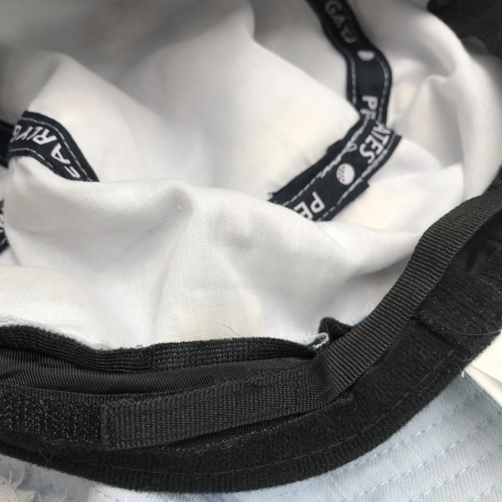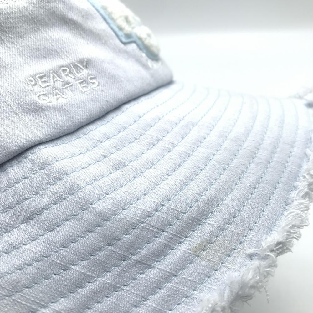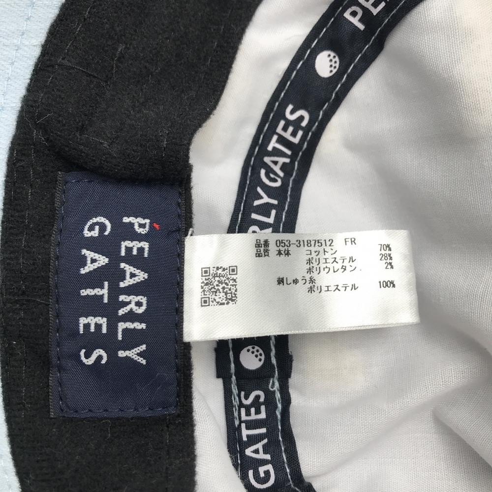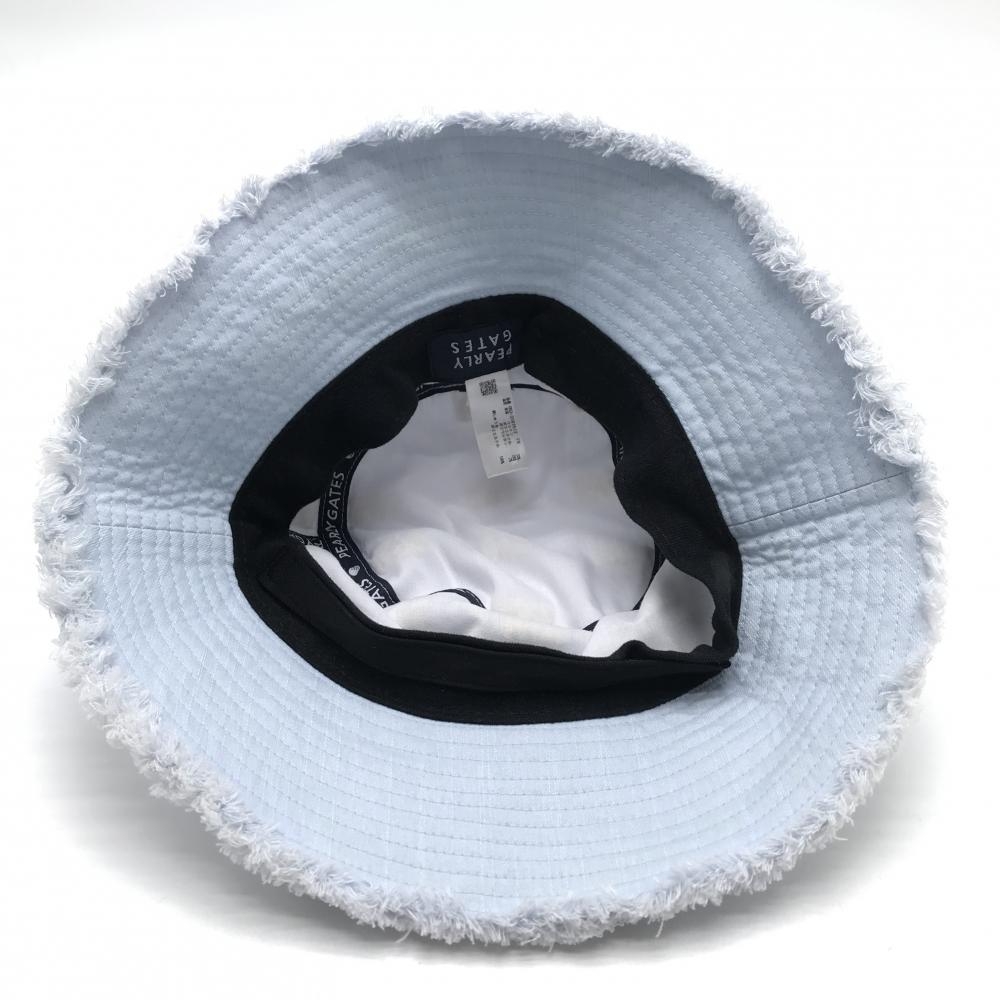 パーリーゲイツ ハット ライトブルー×白 ロゴ刺しゅう総柄 FR ゴルフウェア 2023年モデル PEARLY GATES