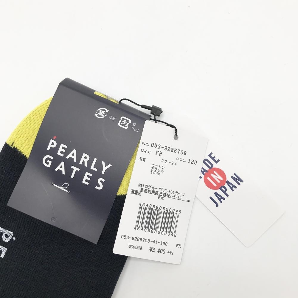 【新品】パーリーゲイツ ニーハイソックス ネイビー×イエロー ロゴ 日本製 レディース FR(225-24cm) ゴルフウェア PEARLY GATES