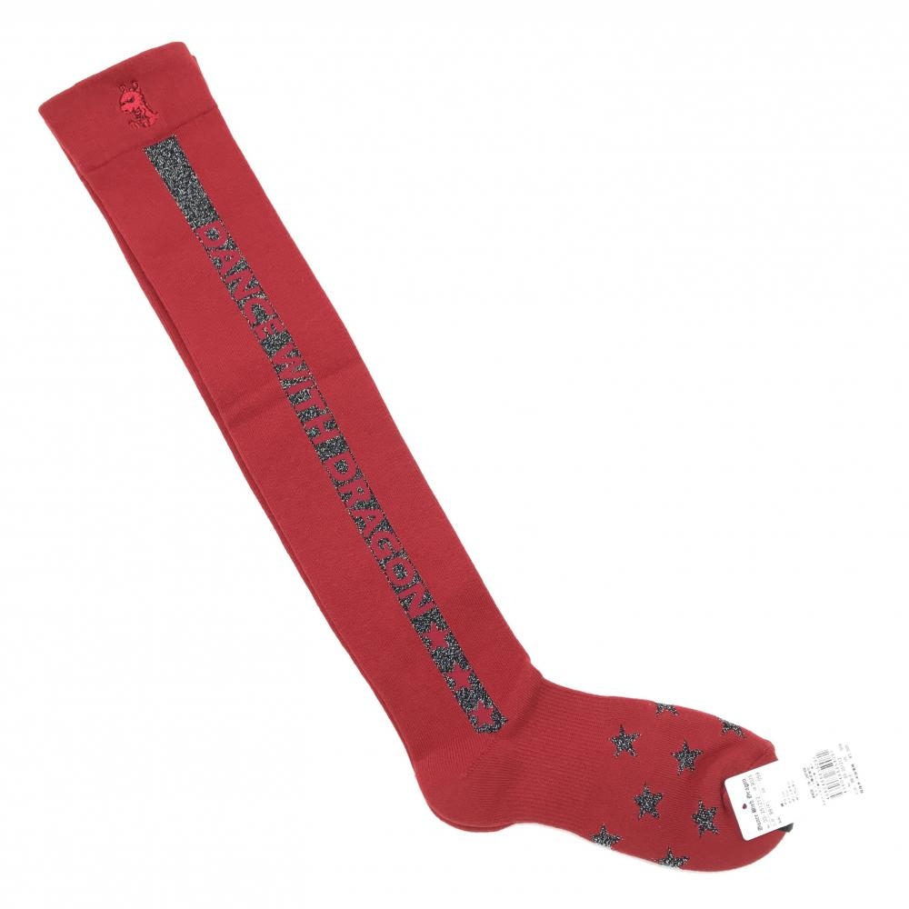 【新品】ダンスウィズドラゴン ニーハイソックス レッド×黒 一部ラメ チビドラ レディース 99(F) ゴルフウェア Dance With Dragon