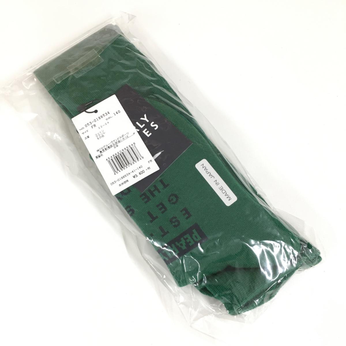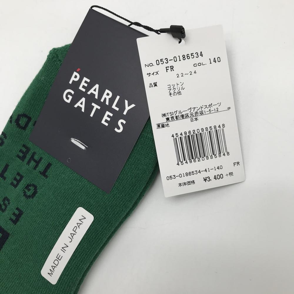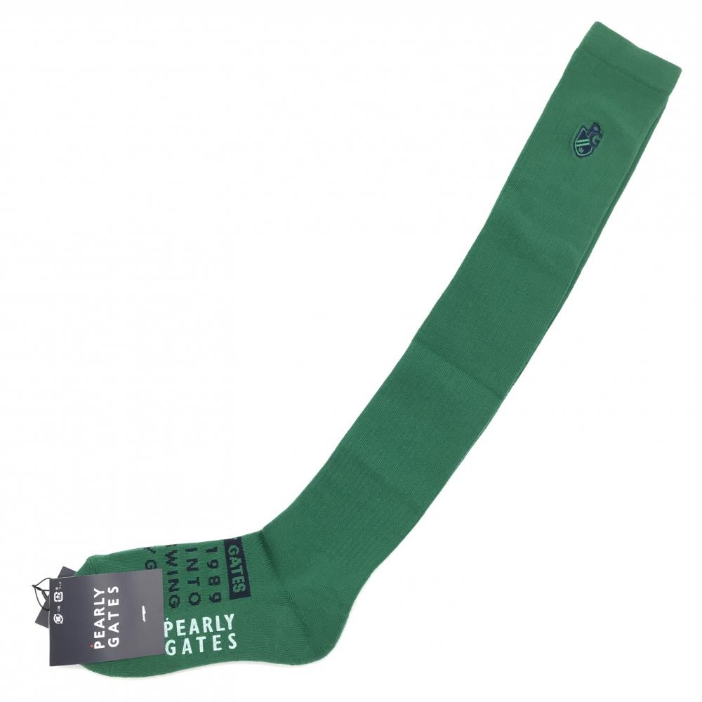【新品】パーリーゲイツ ニーハイソックス グリーン×ネイビー ロゴ 日本製 レディース FR(22-24cm) ゴルフウェア PEARLY GATES