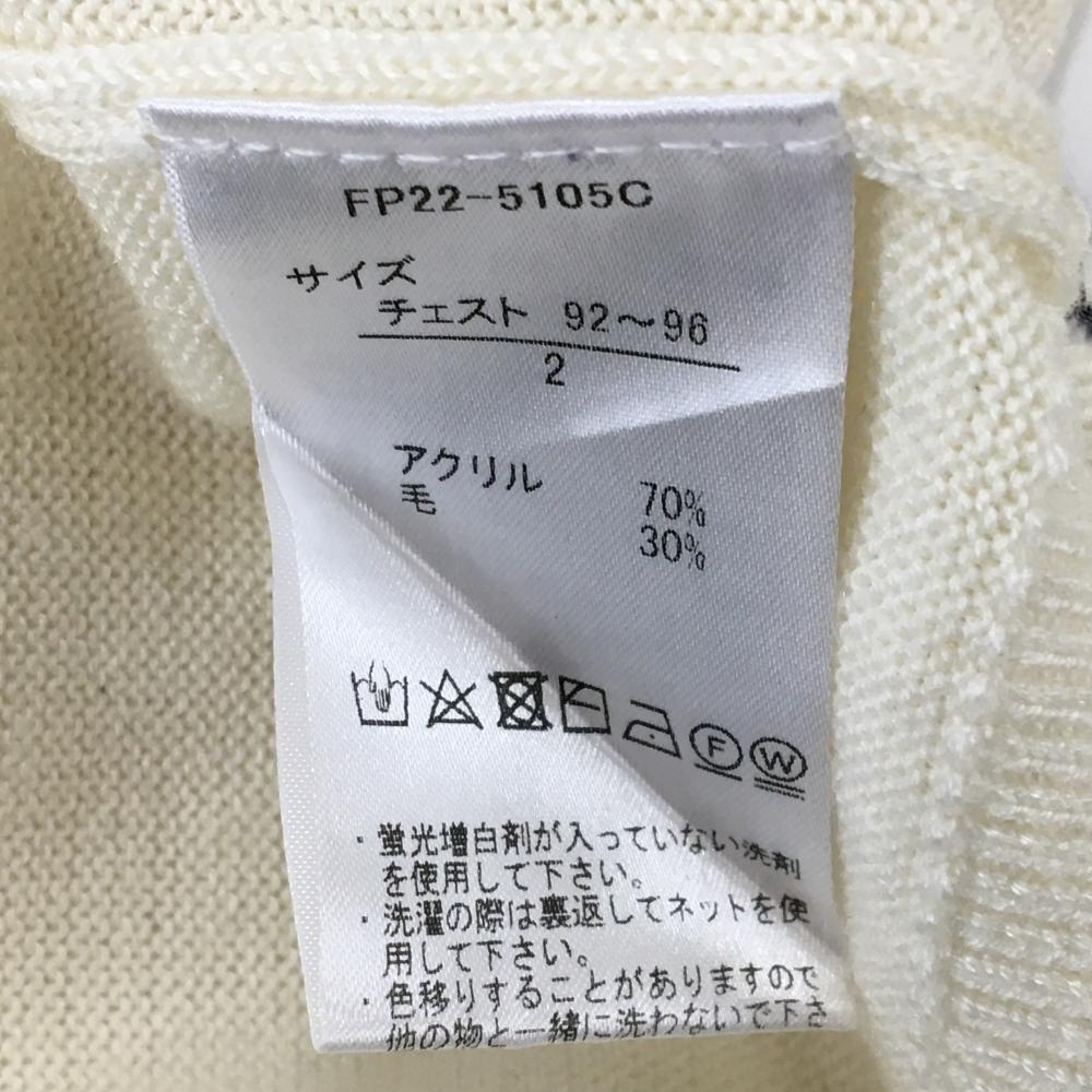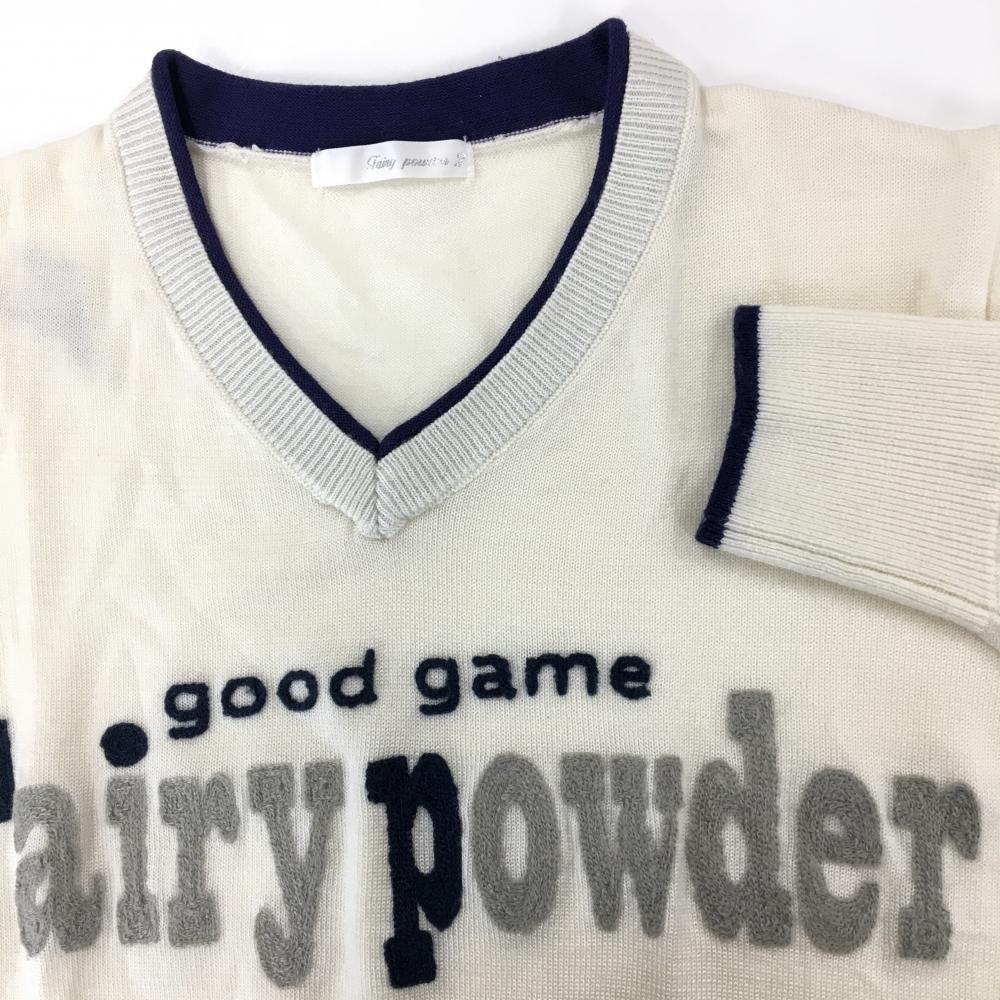 【美品】フェアリーパウダー セーター 白×ネイビー フロント英字 Vネック ウール混 ニット メンズ 2(M) ゴルフウェア FAIRY POWDER