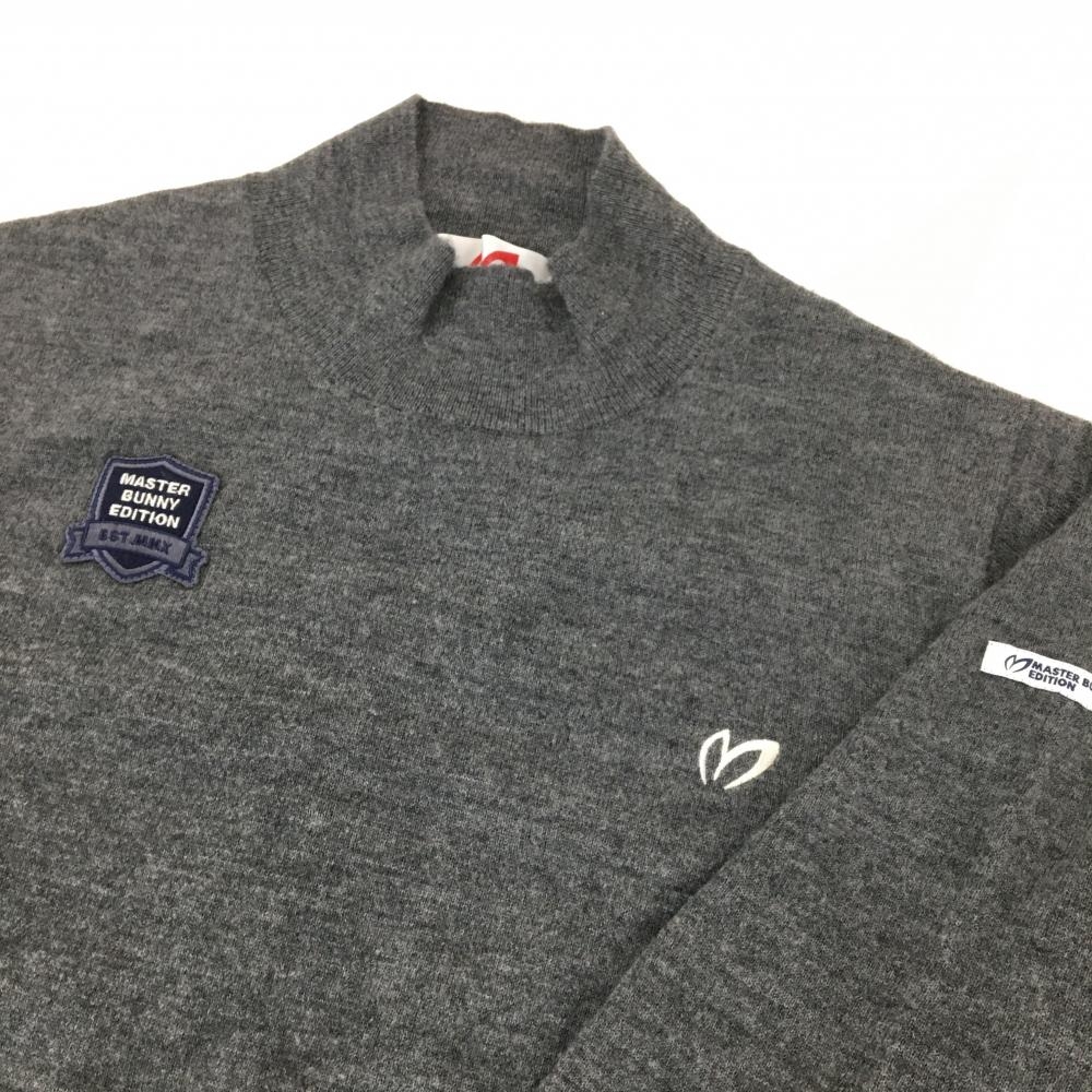 マスターバニー ハイネックセーター グレー ロゴ白 ウール100% ニット メンズ 6(XL) ゴルフウェア MASTER BUNNY EDITION