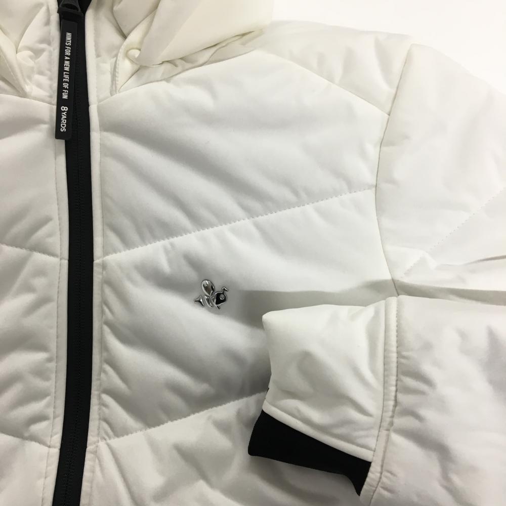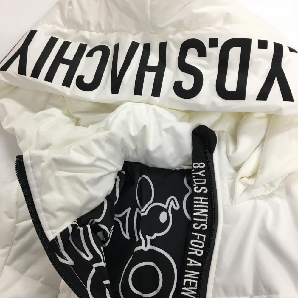 【超美品】ハチヤーズ 2WAY中綿ジャケット 白×黒 ラバーロゴ フード着脱可 メンズ M ゴルフウェア 8YARDS