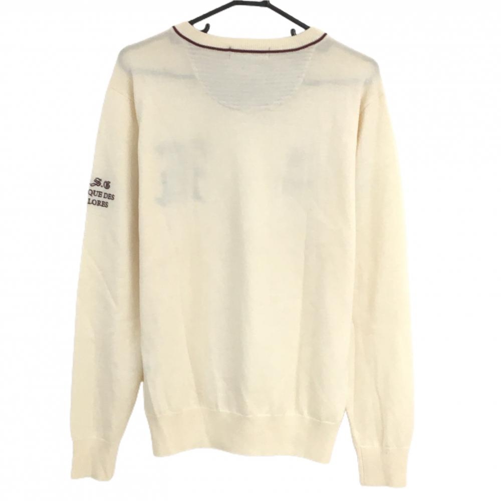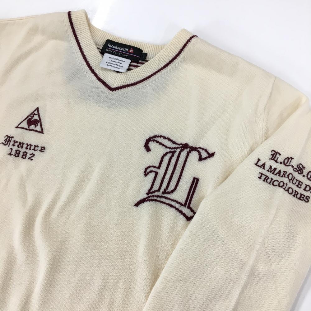 【超美品】ルコックゴルフ セーター アイボリー×ボルドー Vネック ウール100% ニット メンズ L ゴルフウェア le coq sportif