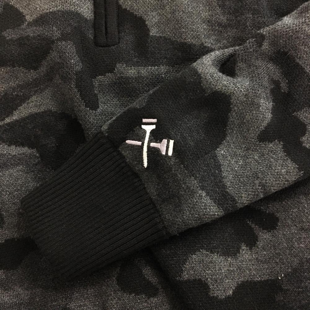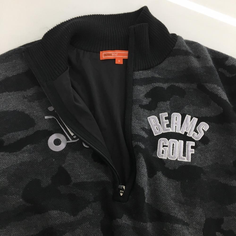 【美品】ビームスゴルフ ハイネックセーター グレー×黒 迷彩 カモフラ ハーフジップ ウール混 裏地付 メンズ S ゴルフウェア BEAMS GOLF