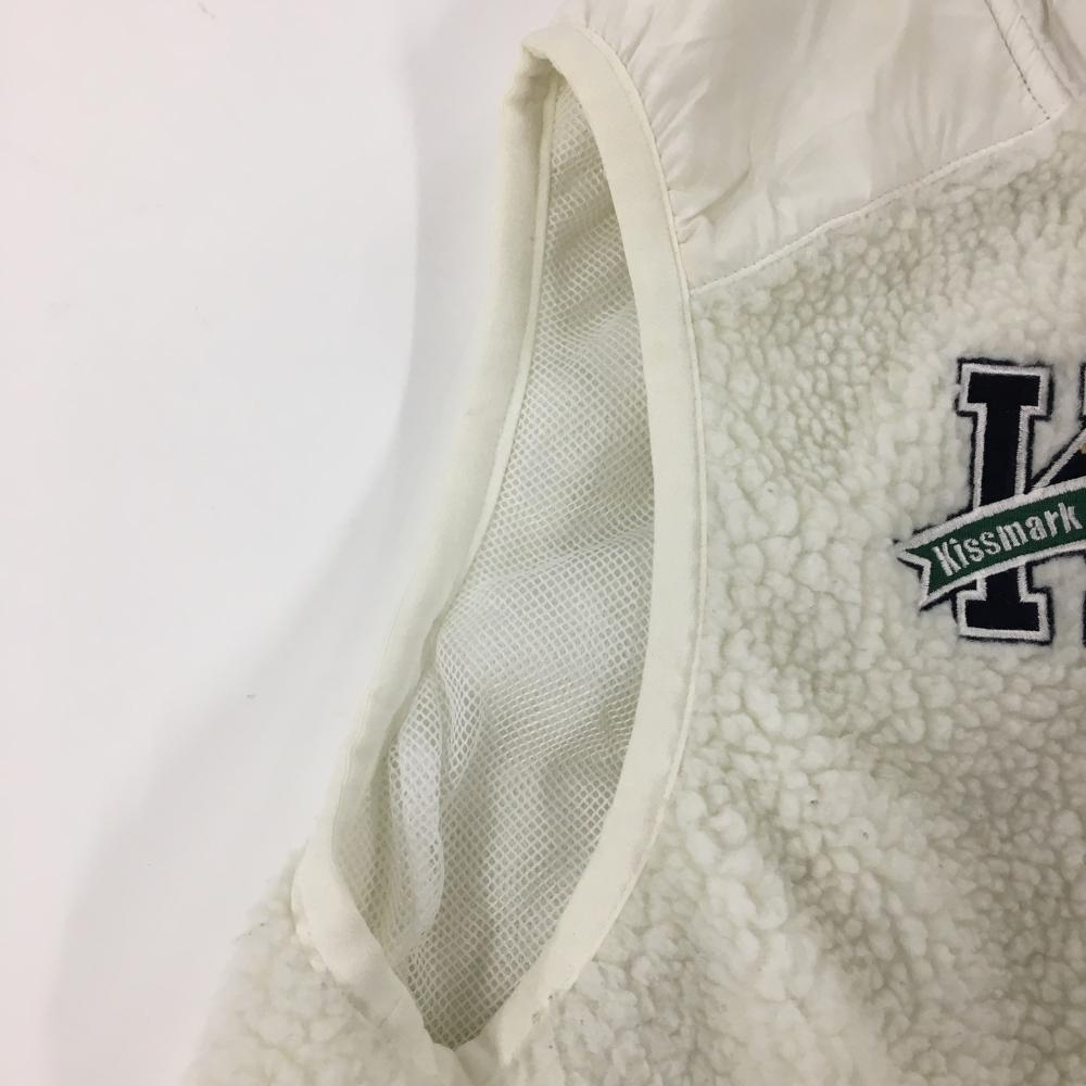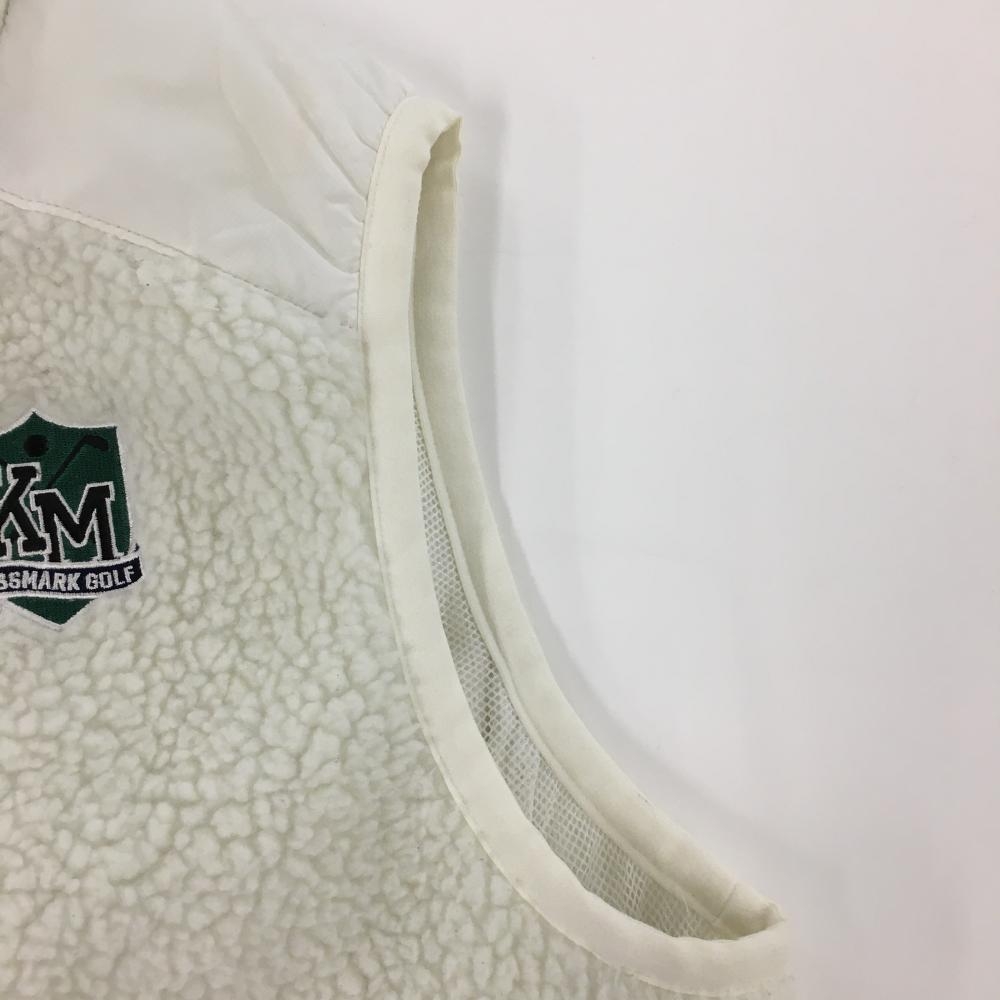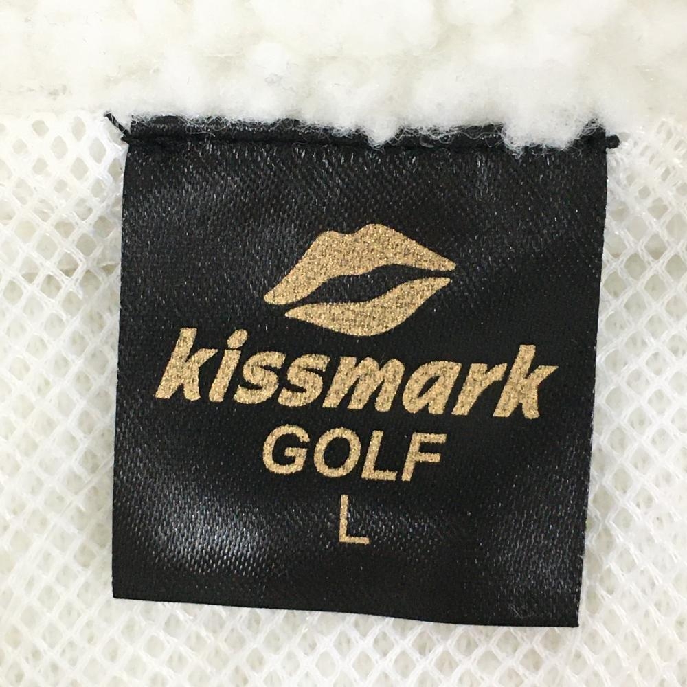 【美品】キスマークゴルフ ボアアウターベスト 白×ネイビー ロゴワッペン 裏地メッシュ レディース L ゴルフウェア Kissmark GOLF