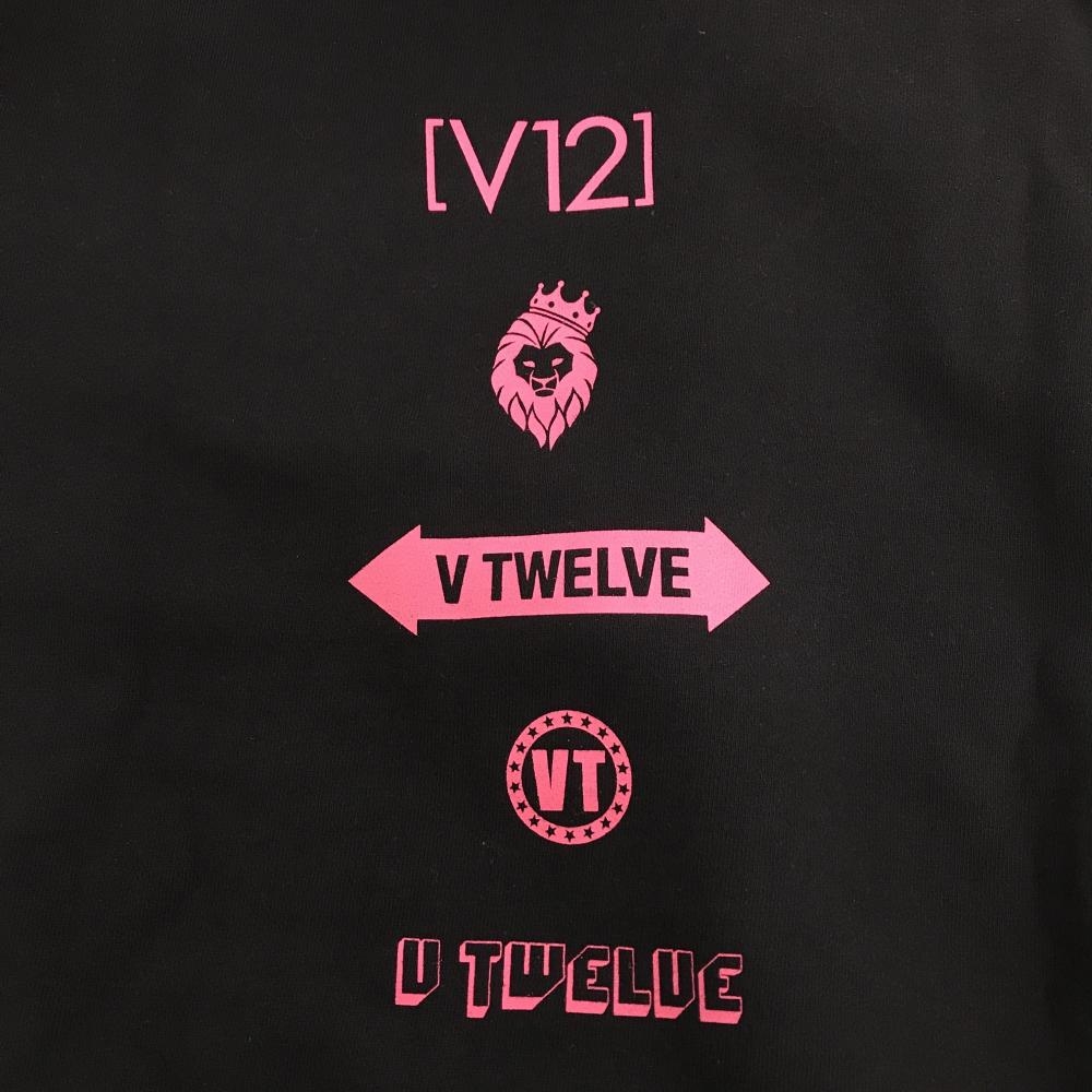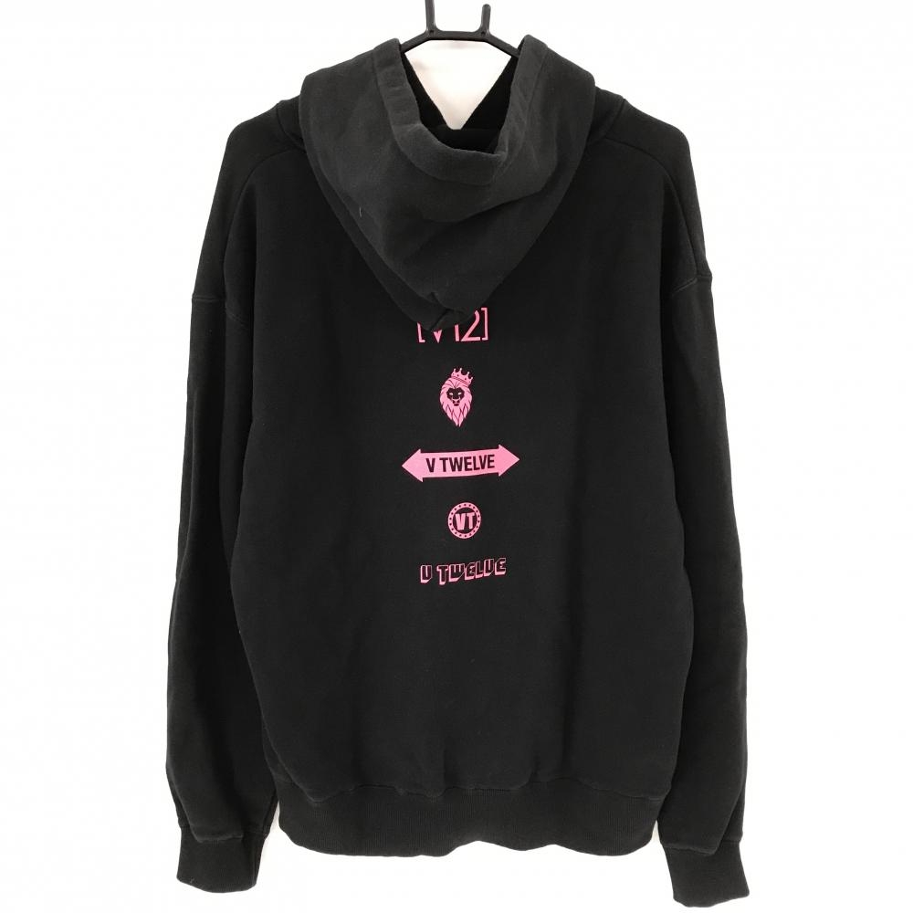 ヴィトゥエルヴ フード付トレーナー 黒 ロゴ蛍光ピンク メンズ XL ゴルフウェア V12