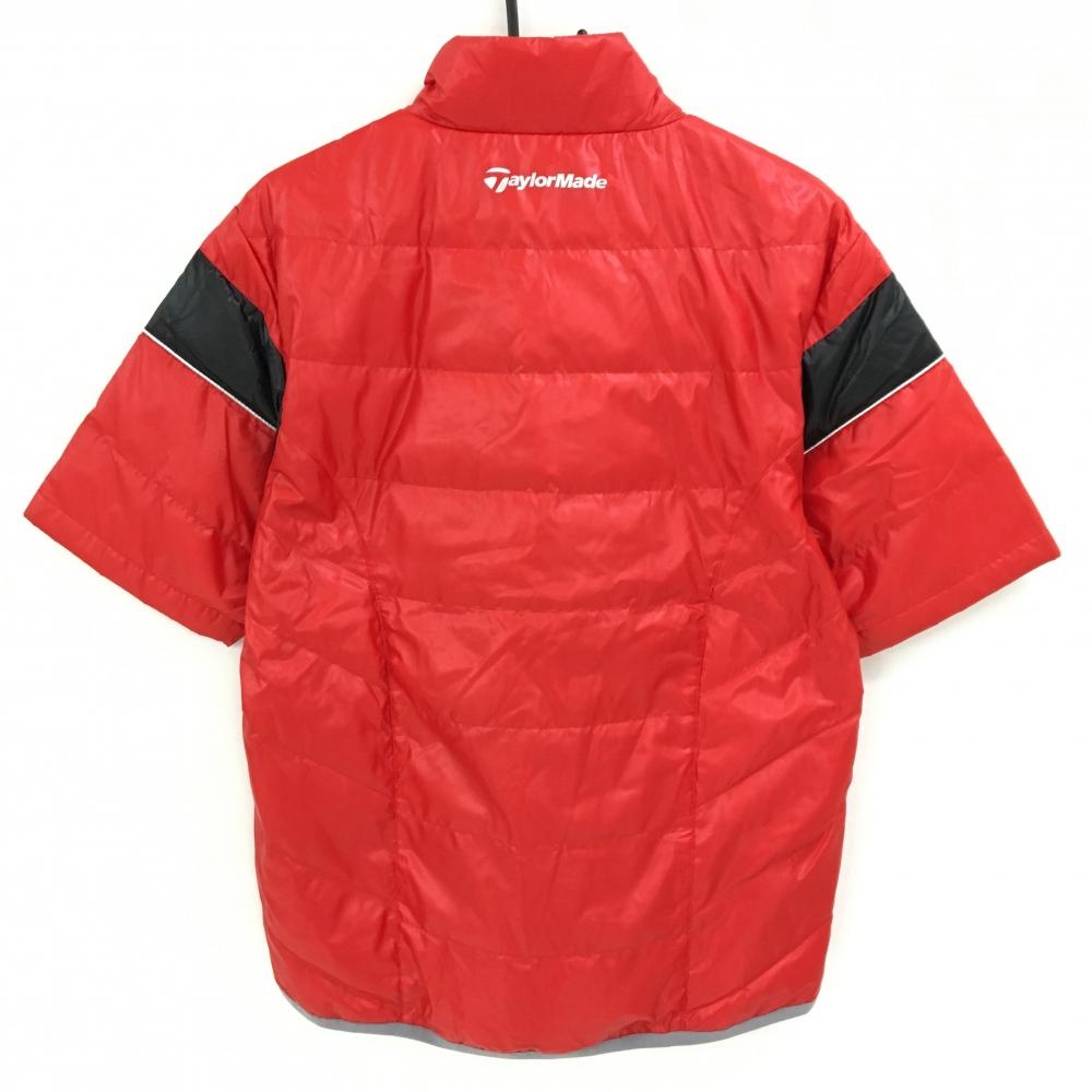 【美品】テーラーメイド 半袖ダウンジャケット レッド×黒 ロゴプリント メンズ L ゴルフウェア TaylorMade