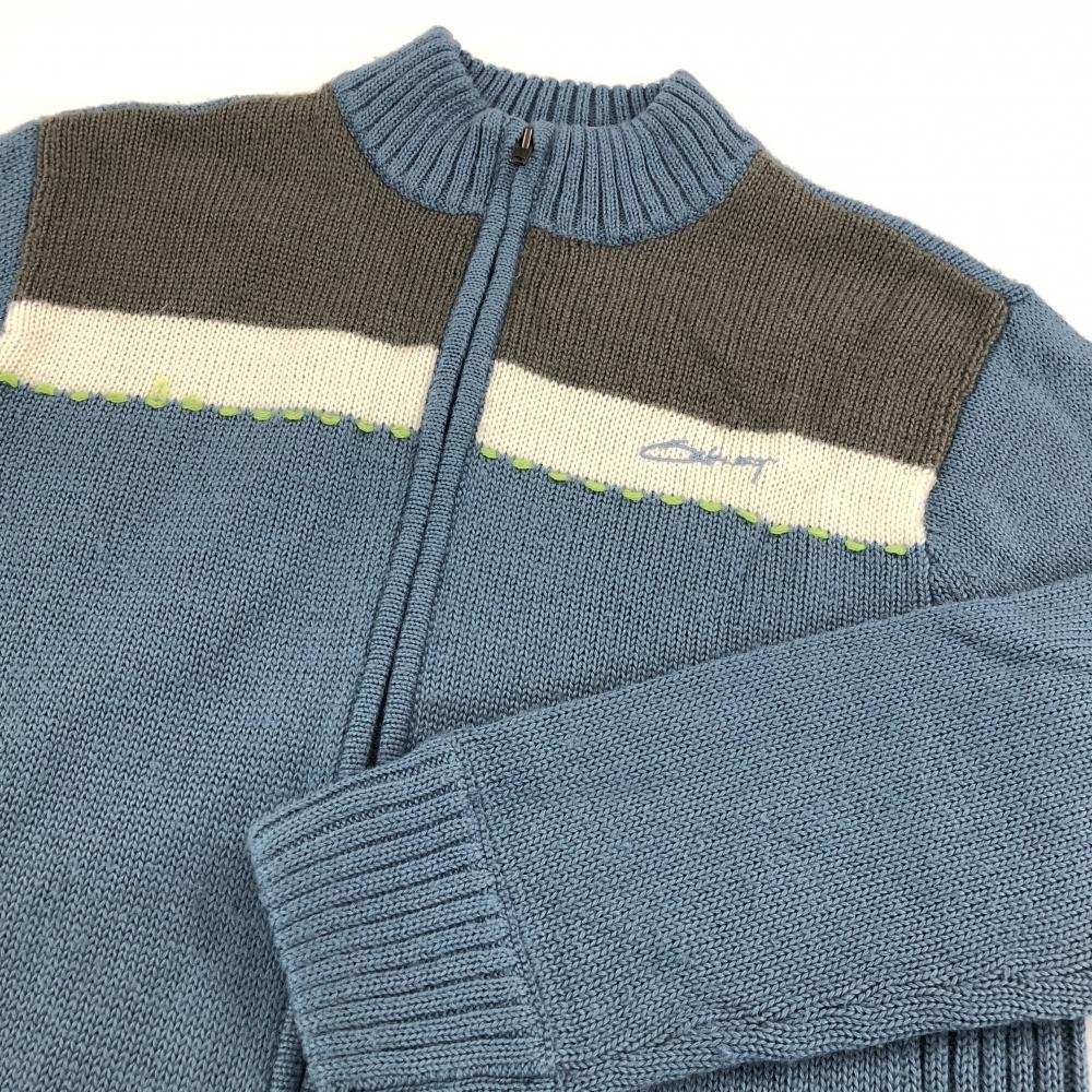 オークリー ニットジャケット スモーキーブルー×グレー ロゴ刺しゅう メンズ M ゴルフウェア Oakley
