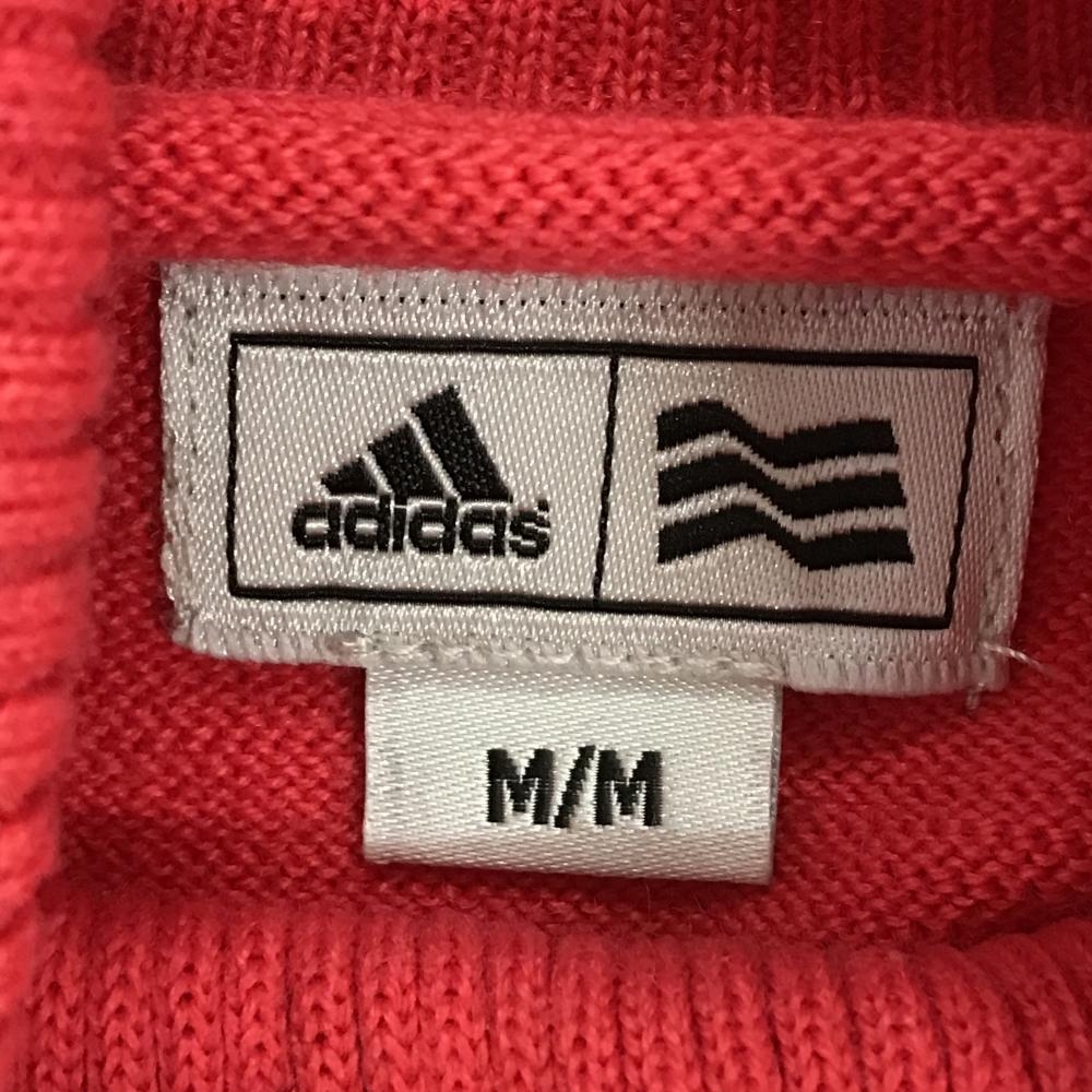 【超美品】アディダス タートルネックセーター ピンク×ネイビー ニット ウール混 ハイネック レディース M/M ゴルフウェア adidas