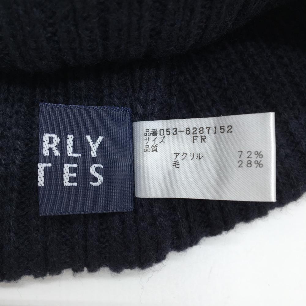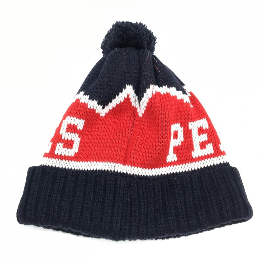 【超美品】パーリーゲイツ ニット帽 ネイビー×レッド ウール混 ボンボン付 FR ゴルフウェア PEARLY GATES