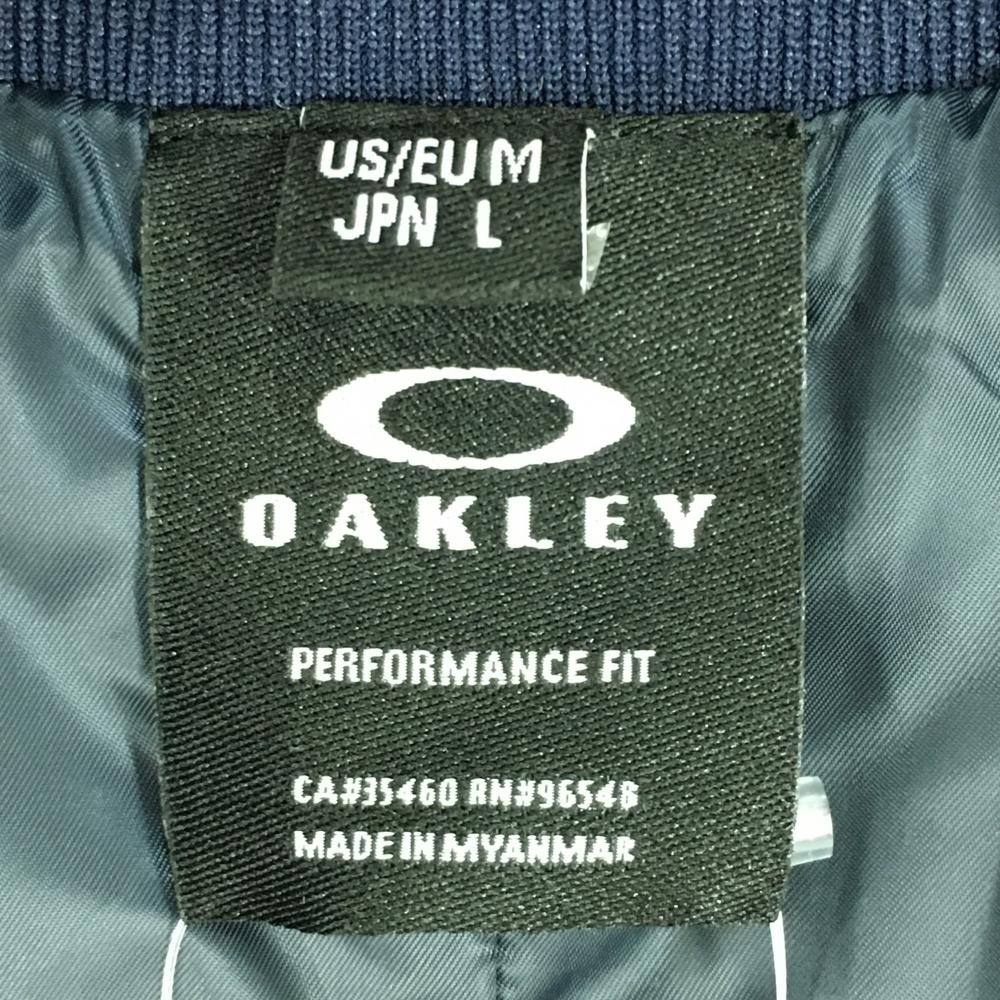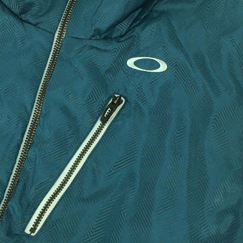 【美品】オークリー 中綿ベスト ブルー 地模様 ロゴ白 メンズ L ゴルフウェア Oakley