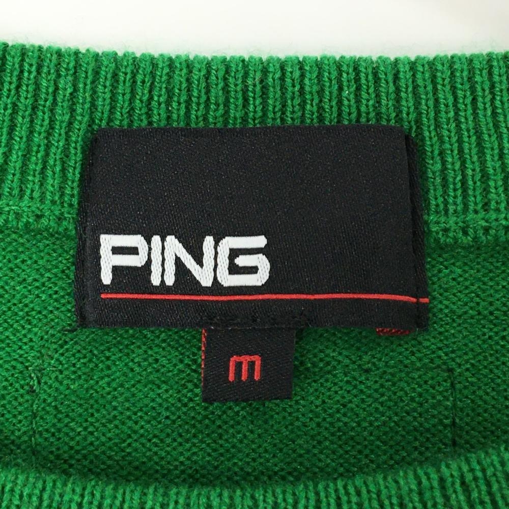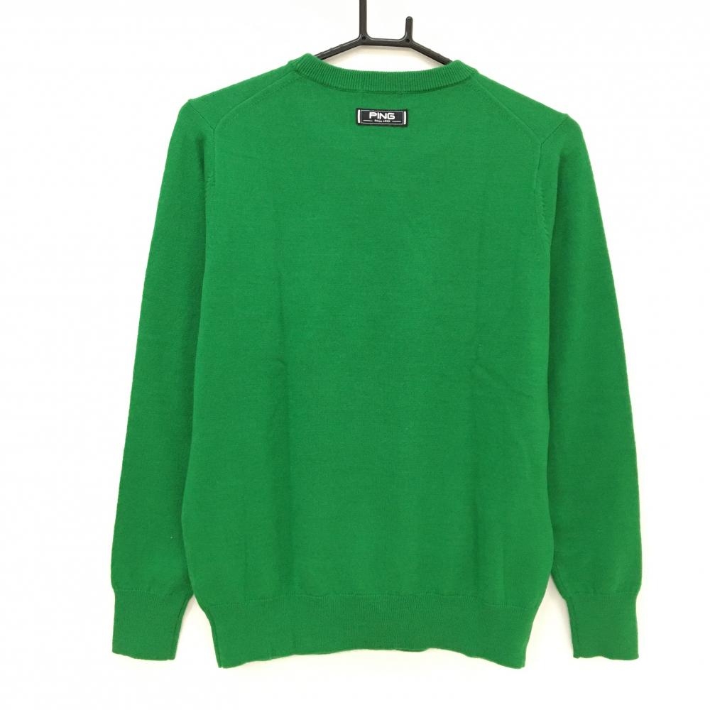 【超美品】ピン セーター グリーン ニット ウール混 ロゴ刺しゅう レディース M ゴルフウェア 2023年モデル PING