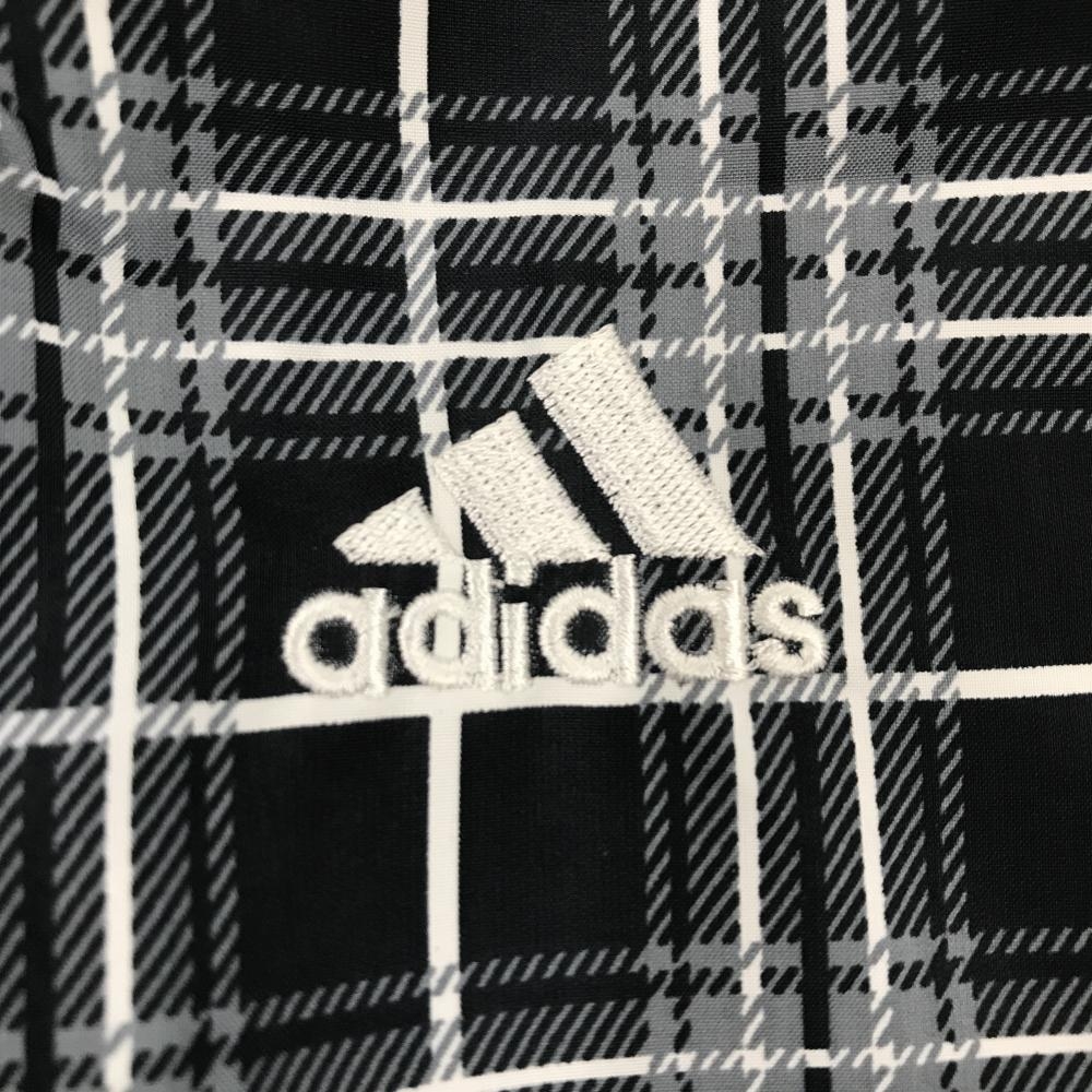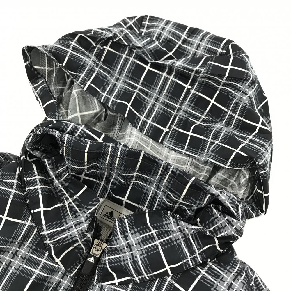 【超美品】アディダス 半袖ジャケット 黒×白 チェック 身頃蓄熱裏地 フード収納可 メンズ O/XG ゴルフウェア adidas