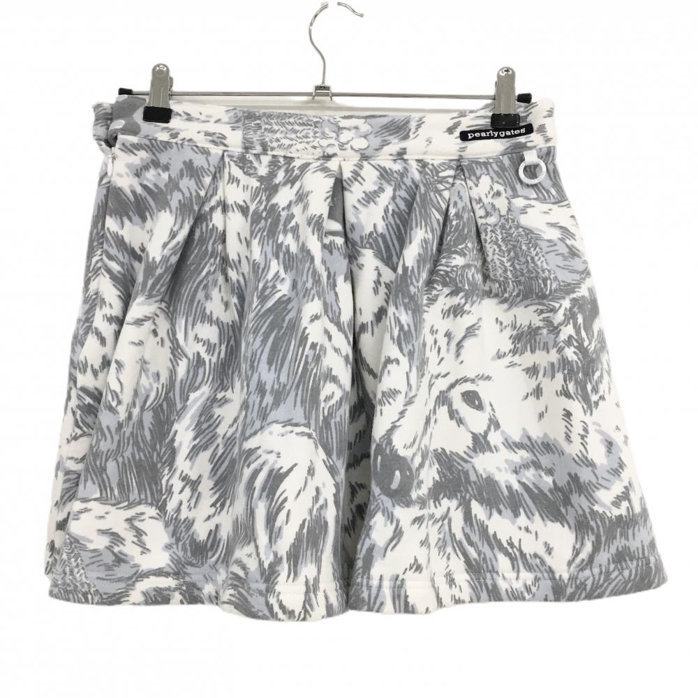 【美品】パーリーゲイツ スカート 白×グレー×ライトブルー 総柄 裏起毛 レディース 1(M) ゴルフウェア PEARLY GATES