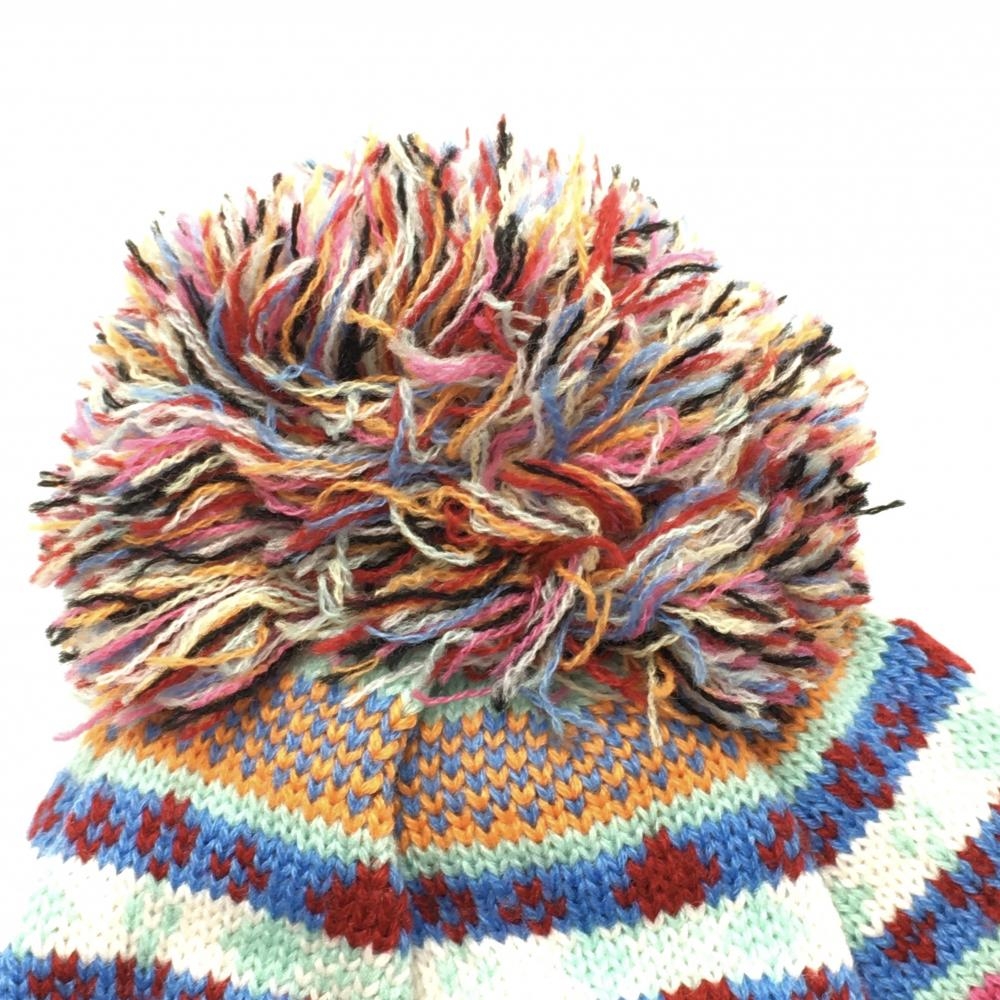 【美品】パーリーゲイツ ニット帽 マルチカラー 総柄ボーダー ウール混 ポンポン付 FR ゴルフウェア PEARLY GATES