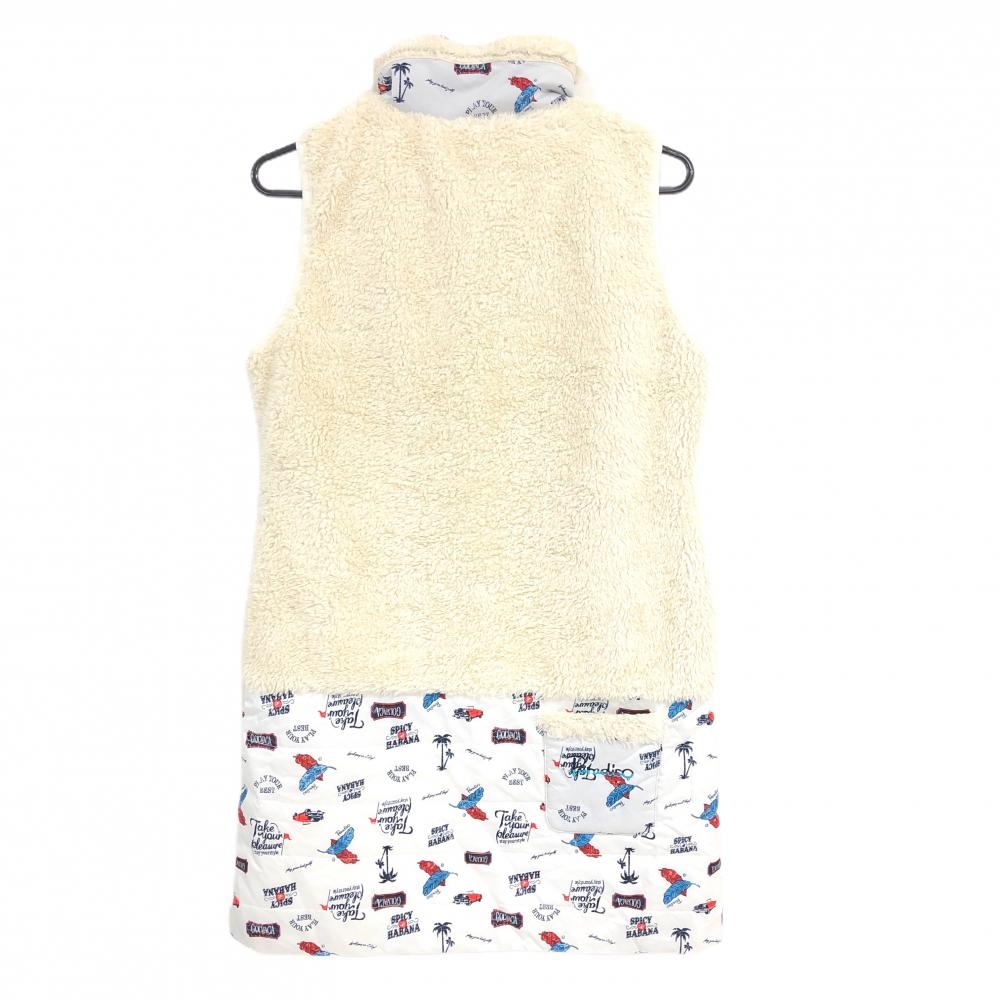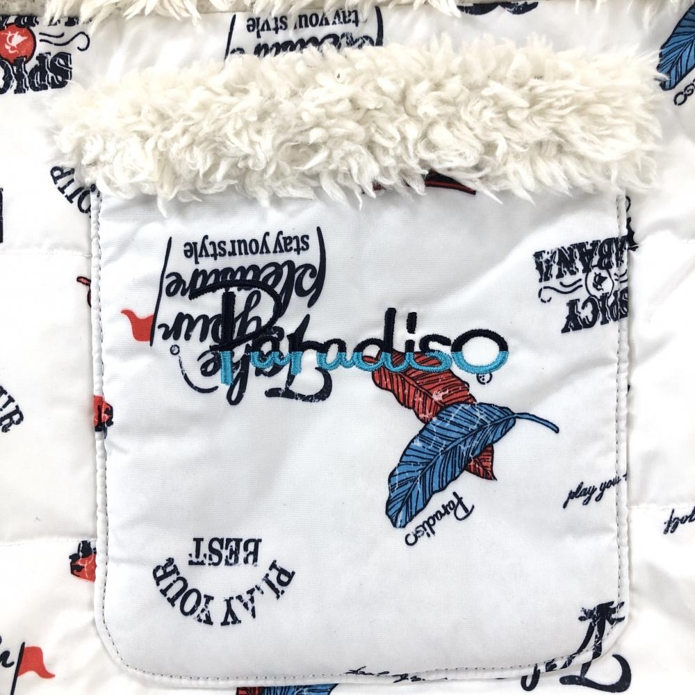 【超美品】パラディーゾ 中綿ノースリーブワンピース アイボリー×白 上半身ボア スカート部総柄 レディース L ゴルフウェア Paradiso