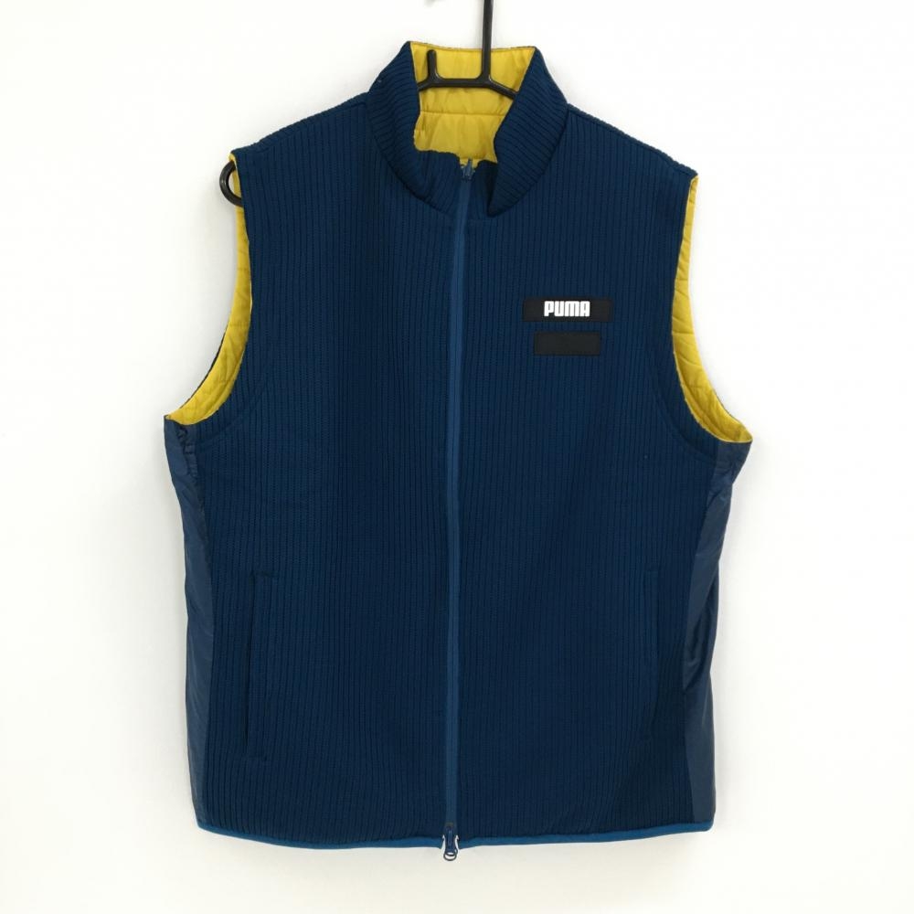 【新品】プーマ 中綿リバーシブルベスト イエロー 裏ニットネイビー WINDCELL メンズ L ゴルフウェア PUMA