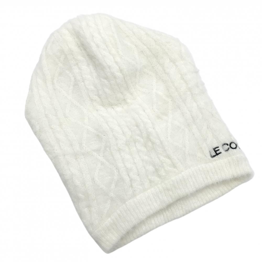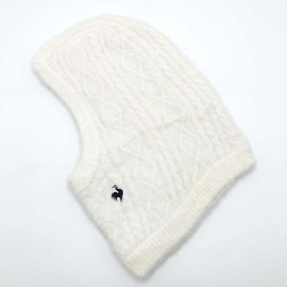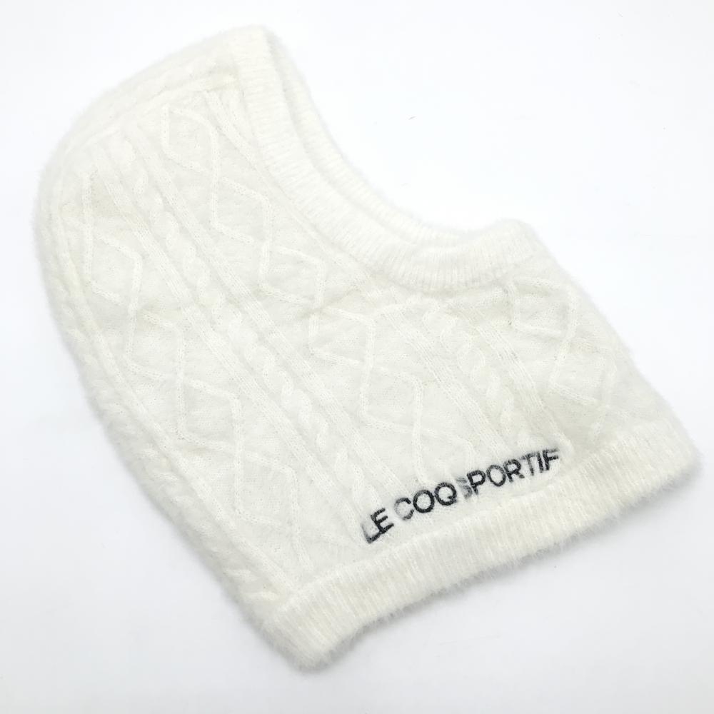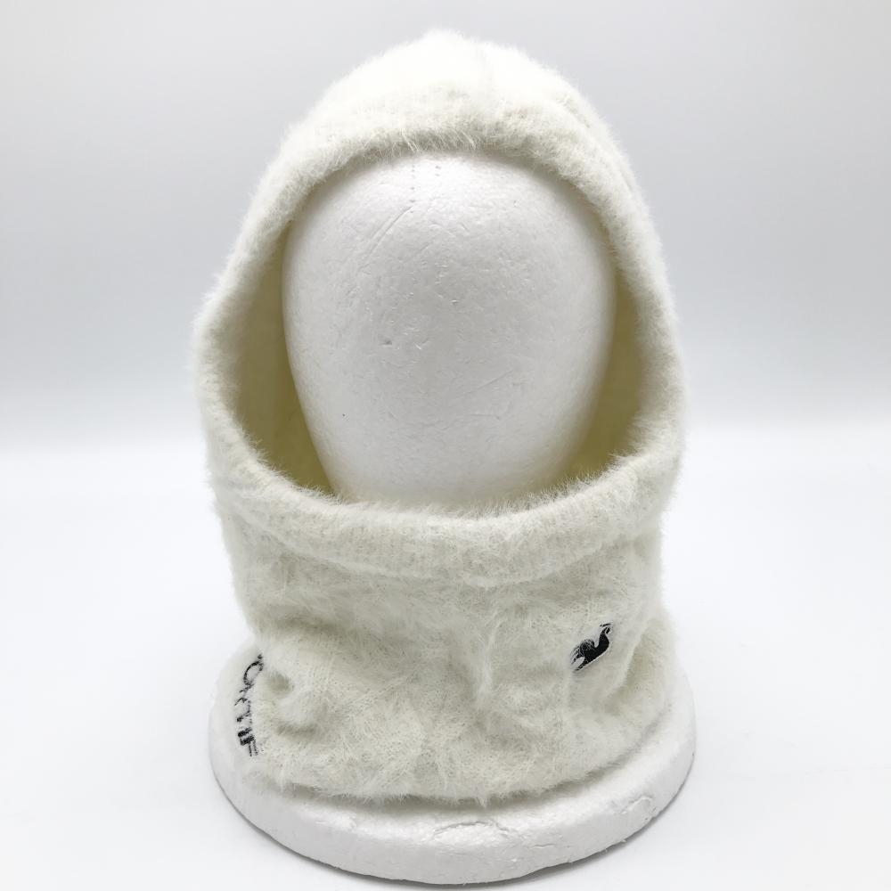 【超美品】ルコック フード付ネックウォーマー 白 ロゴ刺しゅう ニット バラクラマ F ゴルフウェア le coq sportif
