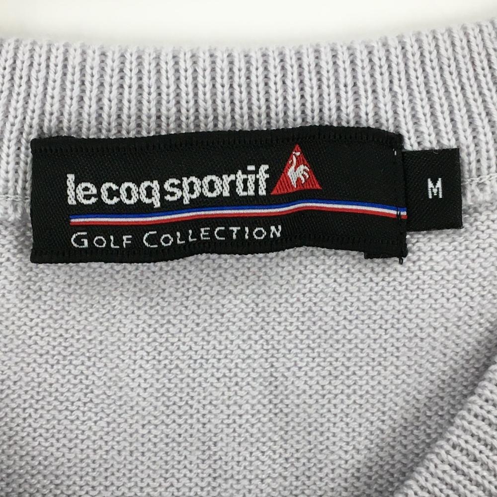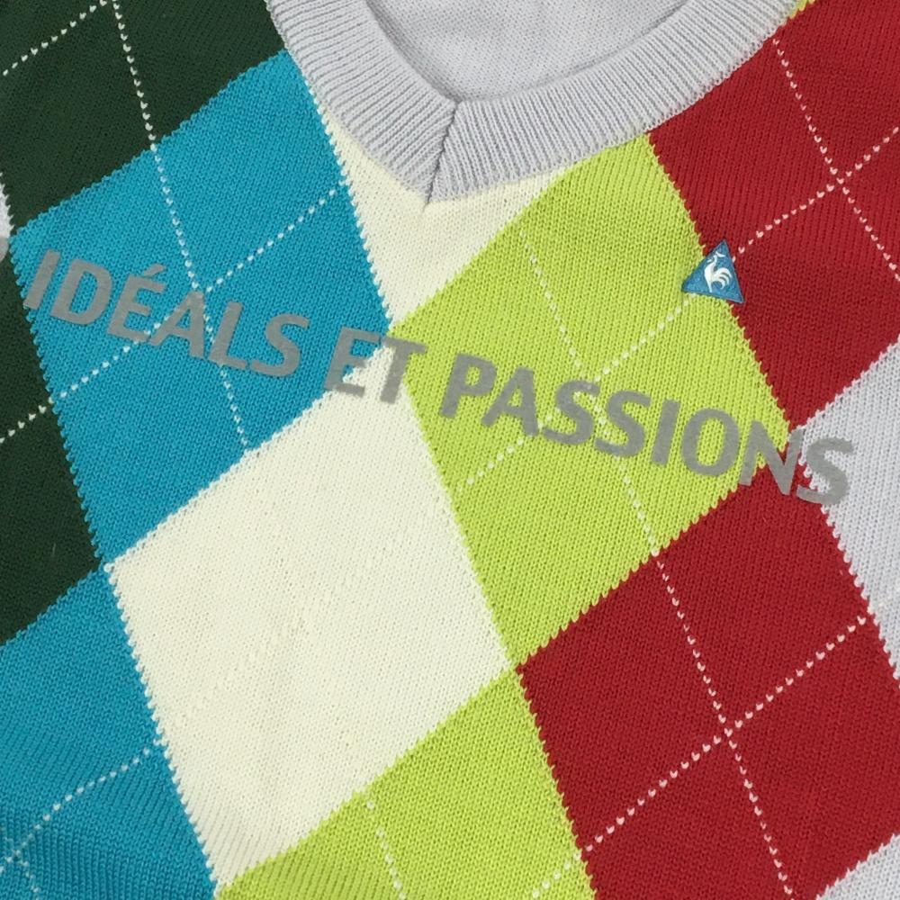【超美品】ルコックゴルフ セーター ライトグレー×マルチカラー 前面アーガイル ウール混 メンズ M ゴルフウェア le coq sportif