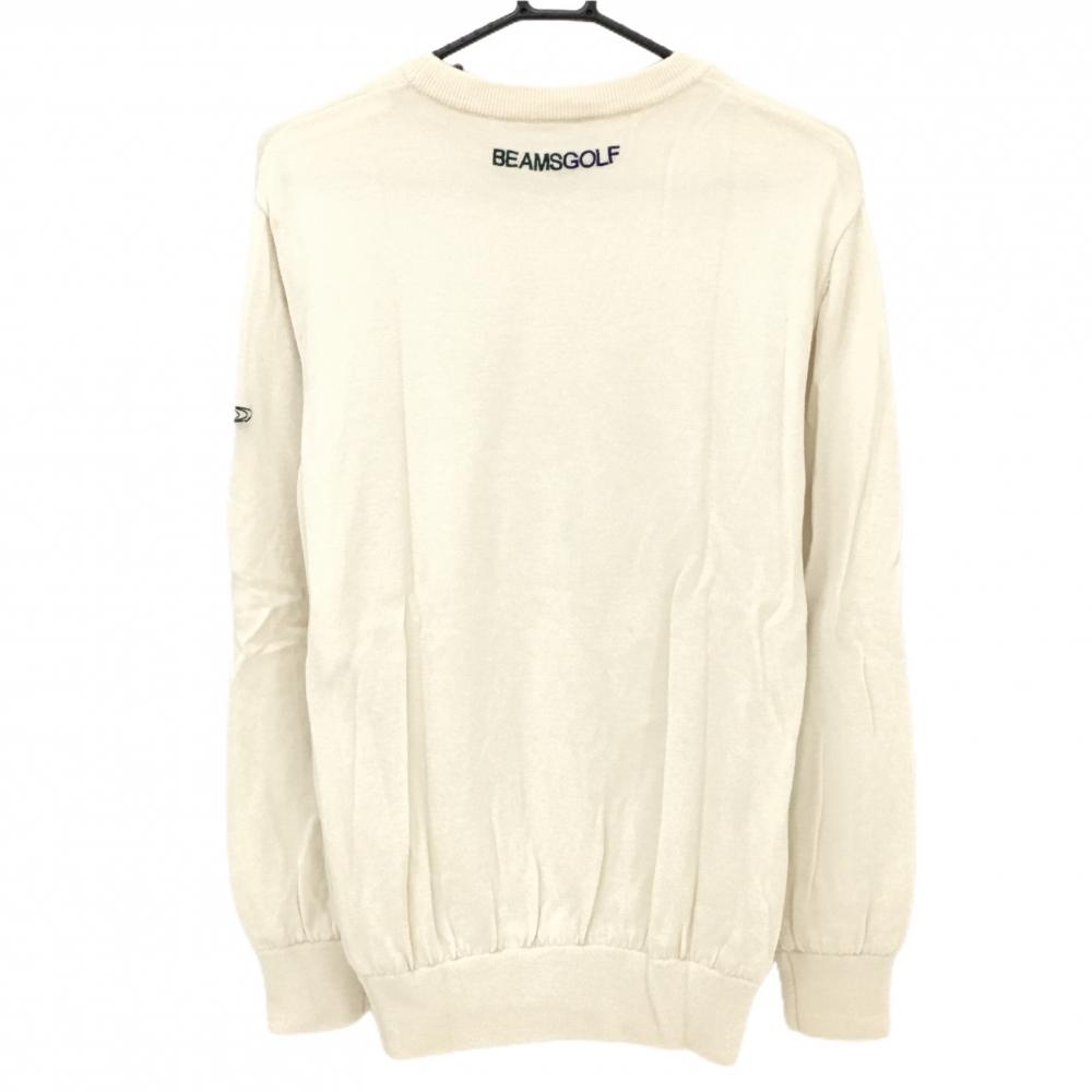 【美品】ビームスゴルフ セーター アイボリー ウール100% 裏地付 ポケット内蓄熱裏地 ニット メンズ L ゴルフウェア BEAMS GOLF