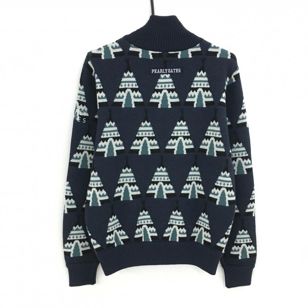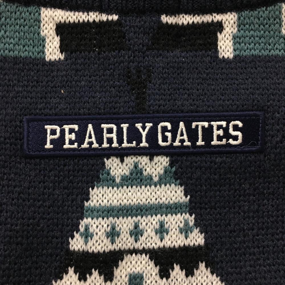 【美品】パーリーゲイツ ニットジャケット ネイビー×白 総柄 ウール100% メンズ 4(M) ゴルフウェア PEARLY GATES