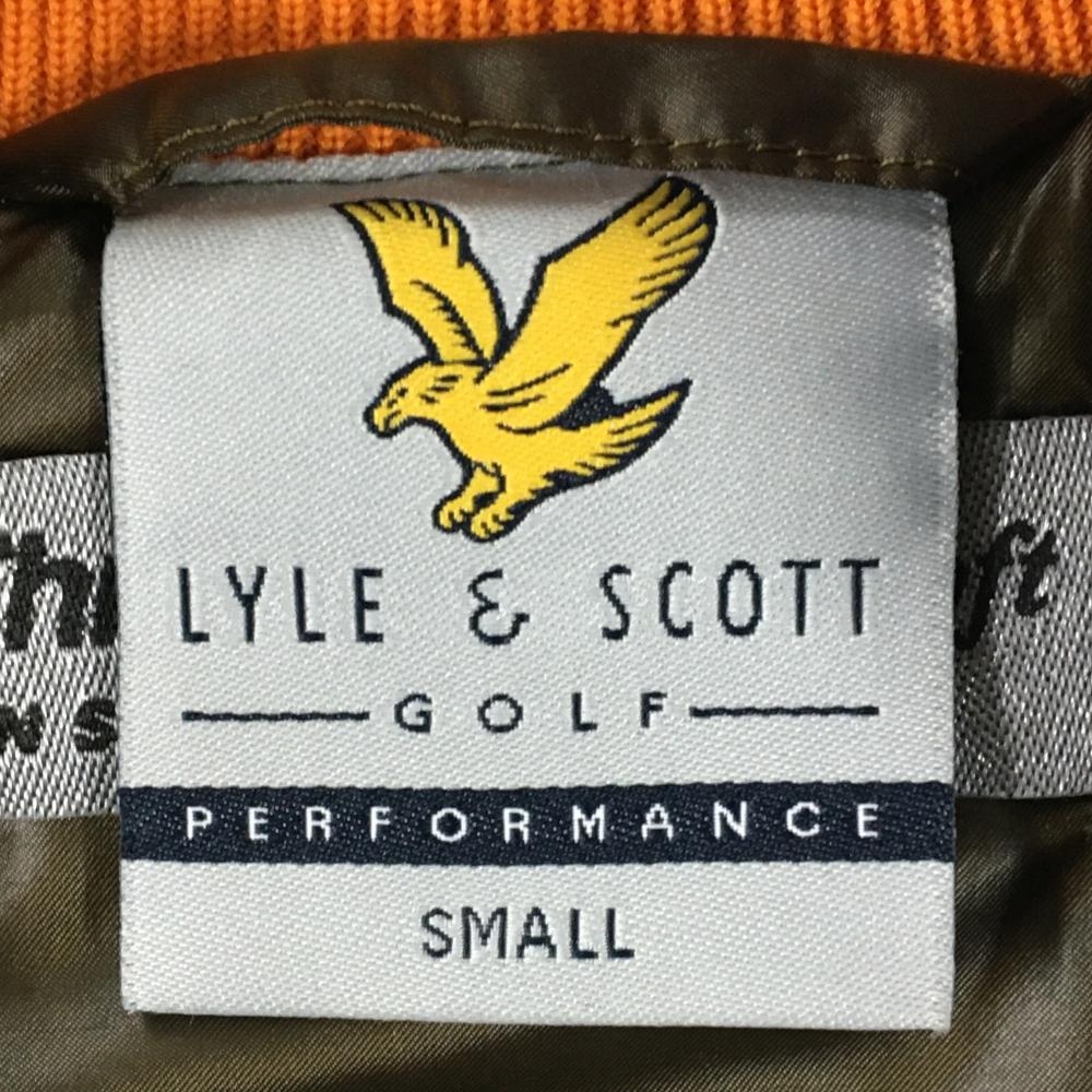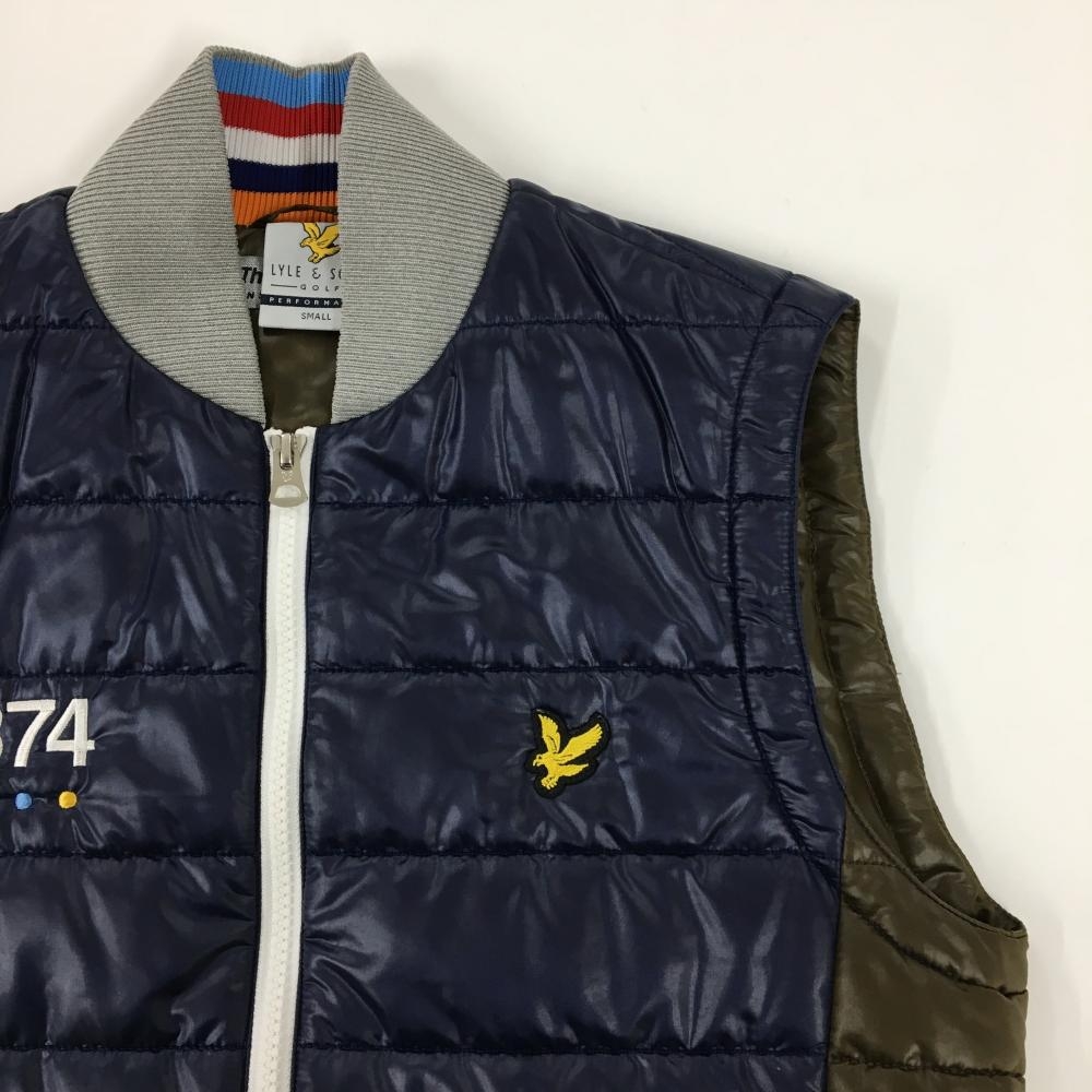 【超美品】ライルアンドスコット 中綿ベスト ネイビー×ブラウン サイド切替 ワッペン メンズ SMALL ゴルフウェア LYLE&SCOTT