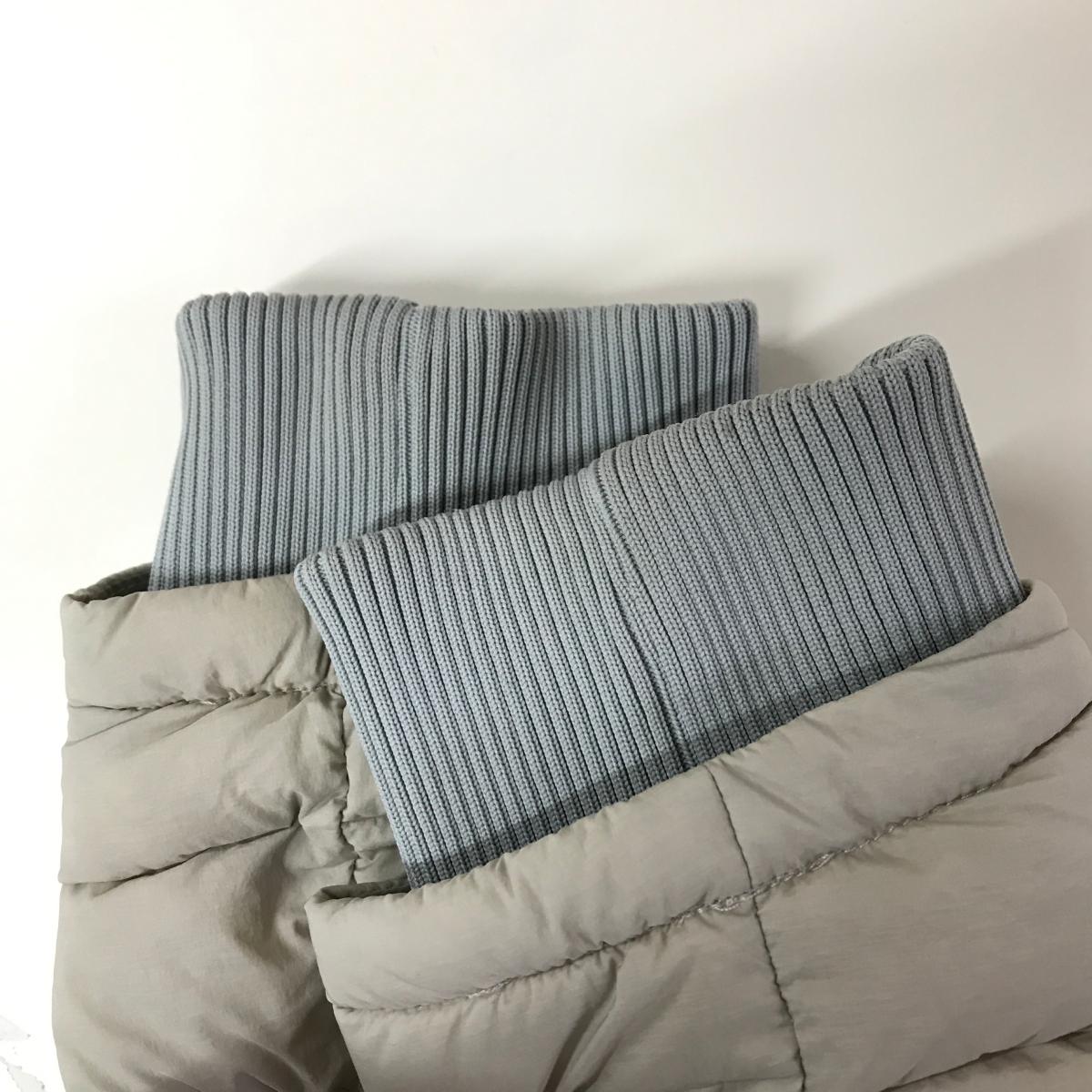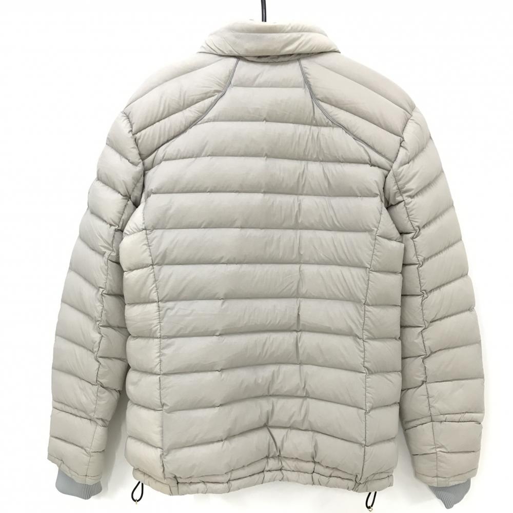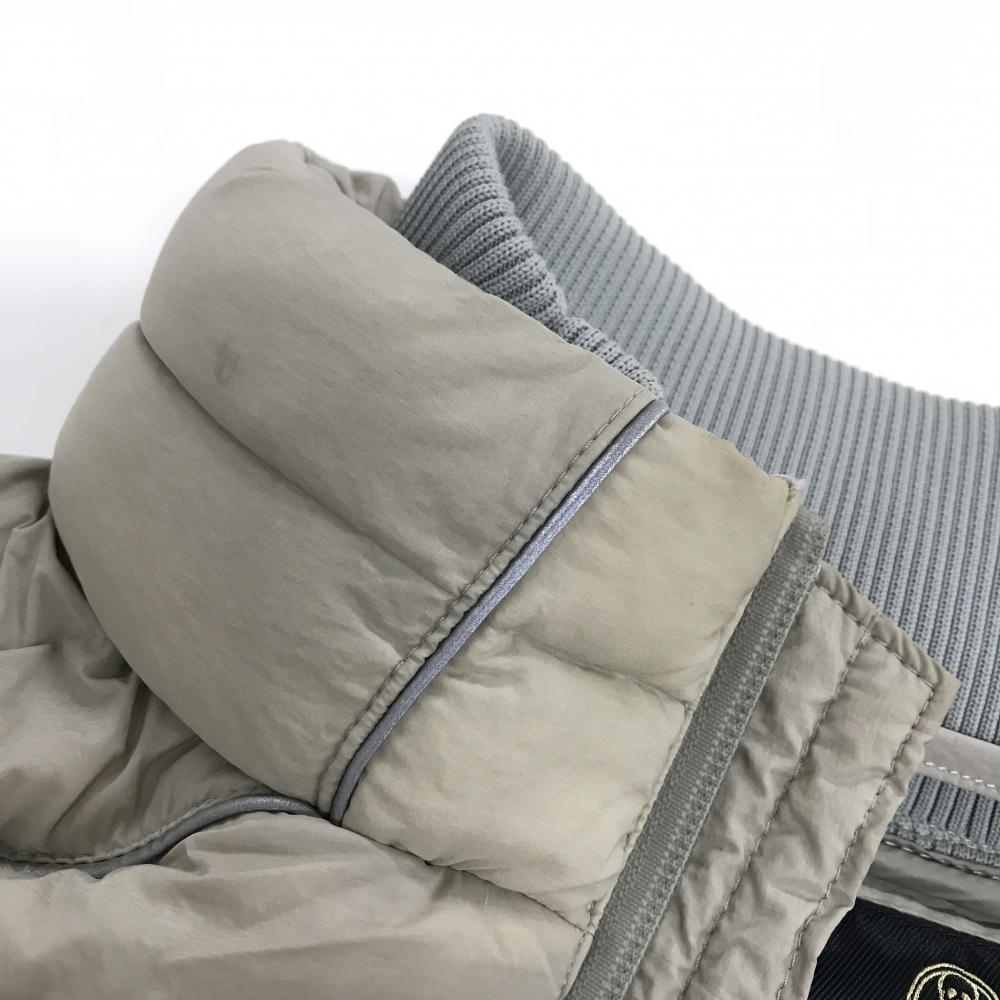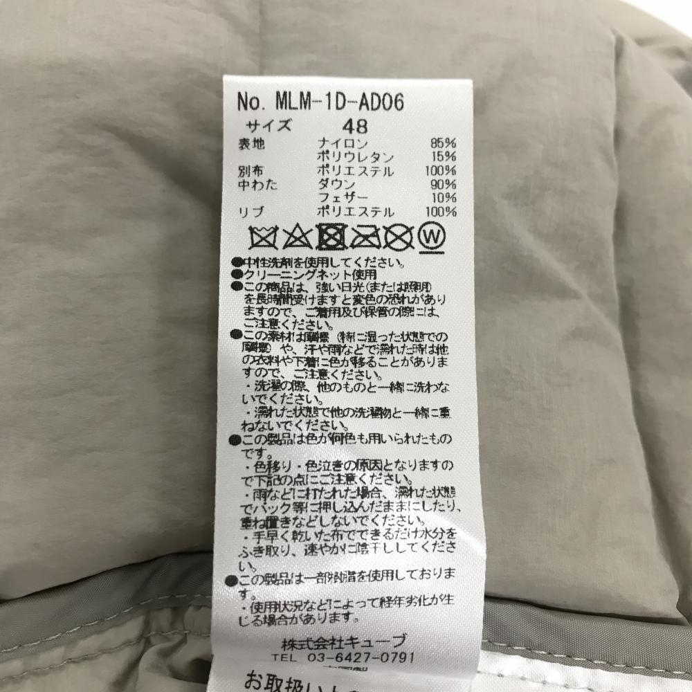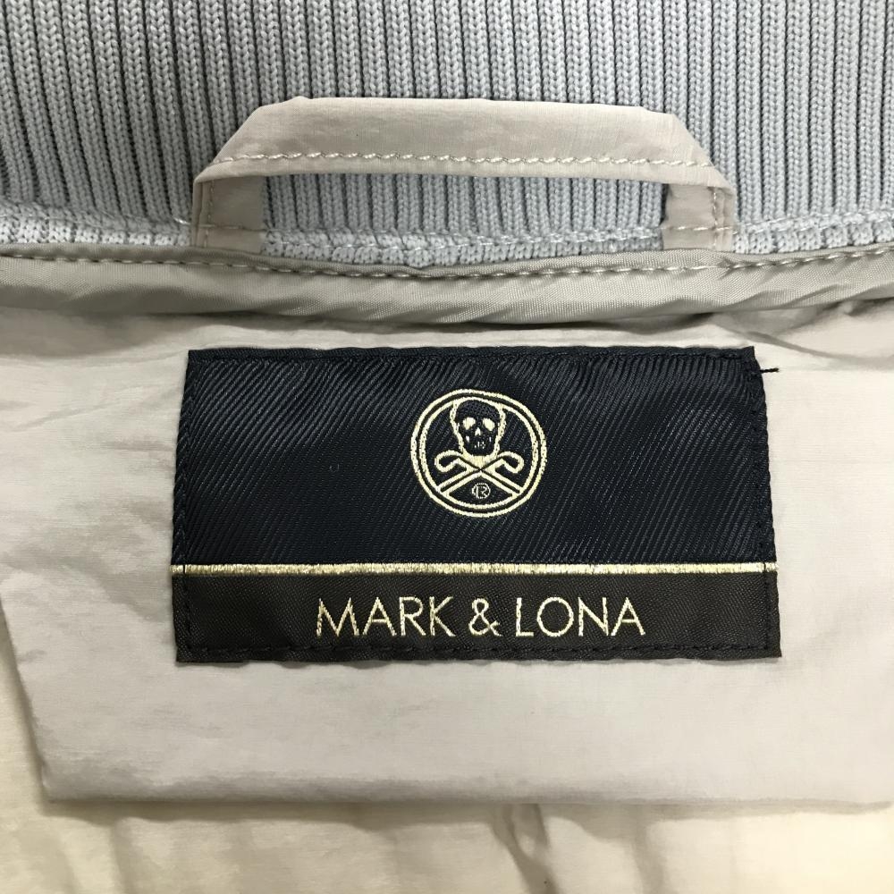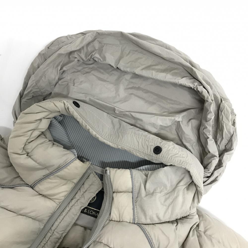 マークアンドロナ ダウンジャケット グレージュ×グレー 袖ロゴプリント フード収納可 メンズ 48(L) ゴルフウェア MARK&LONA