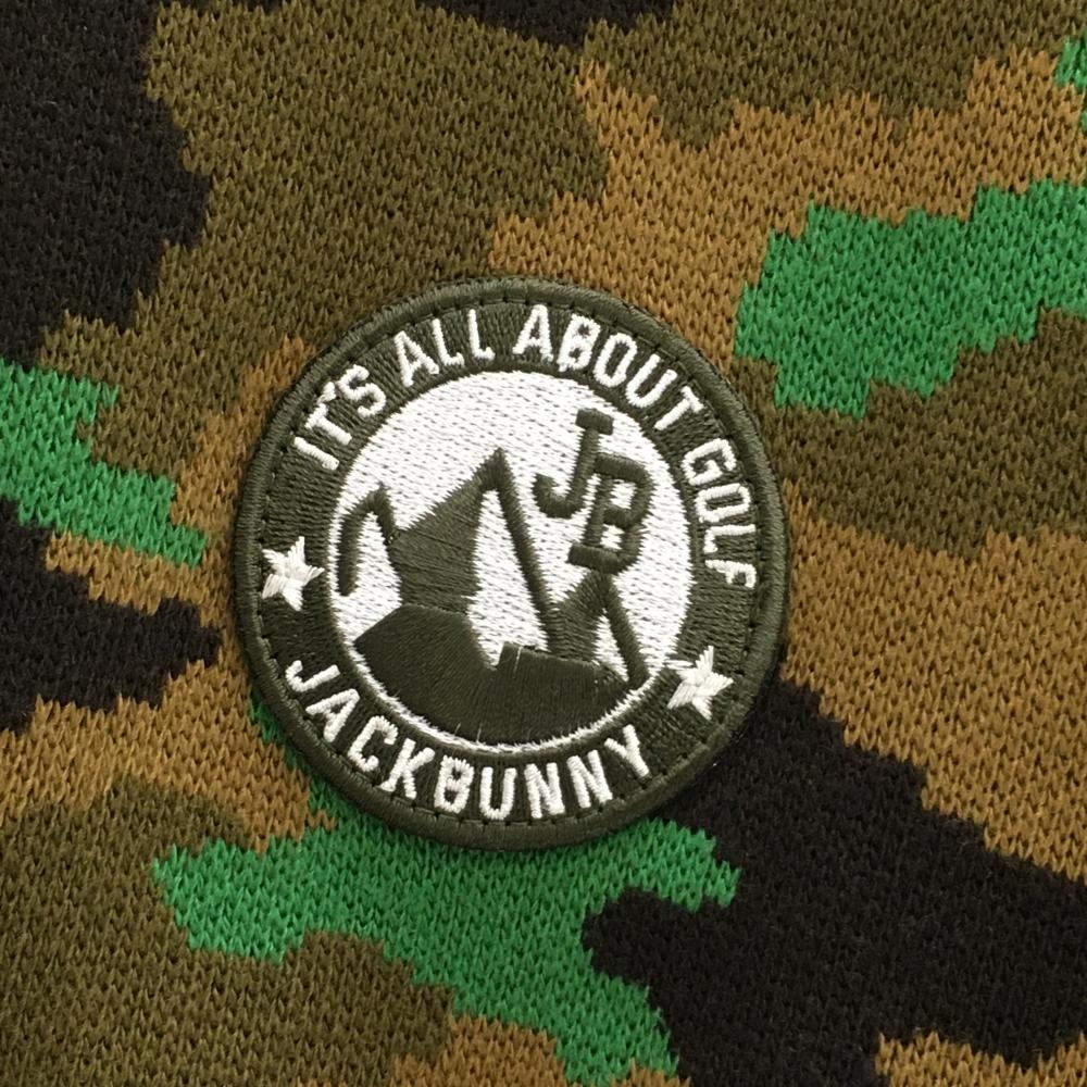 【美品】ジャックバニー ニットジャケット ブラウン×黒 カモフラ 裏地付 迷彩 メンズ 6(XL) ゴルフウェア Jack Bunny
