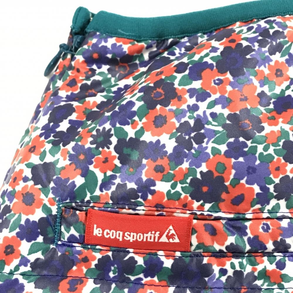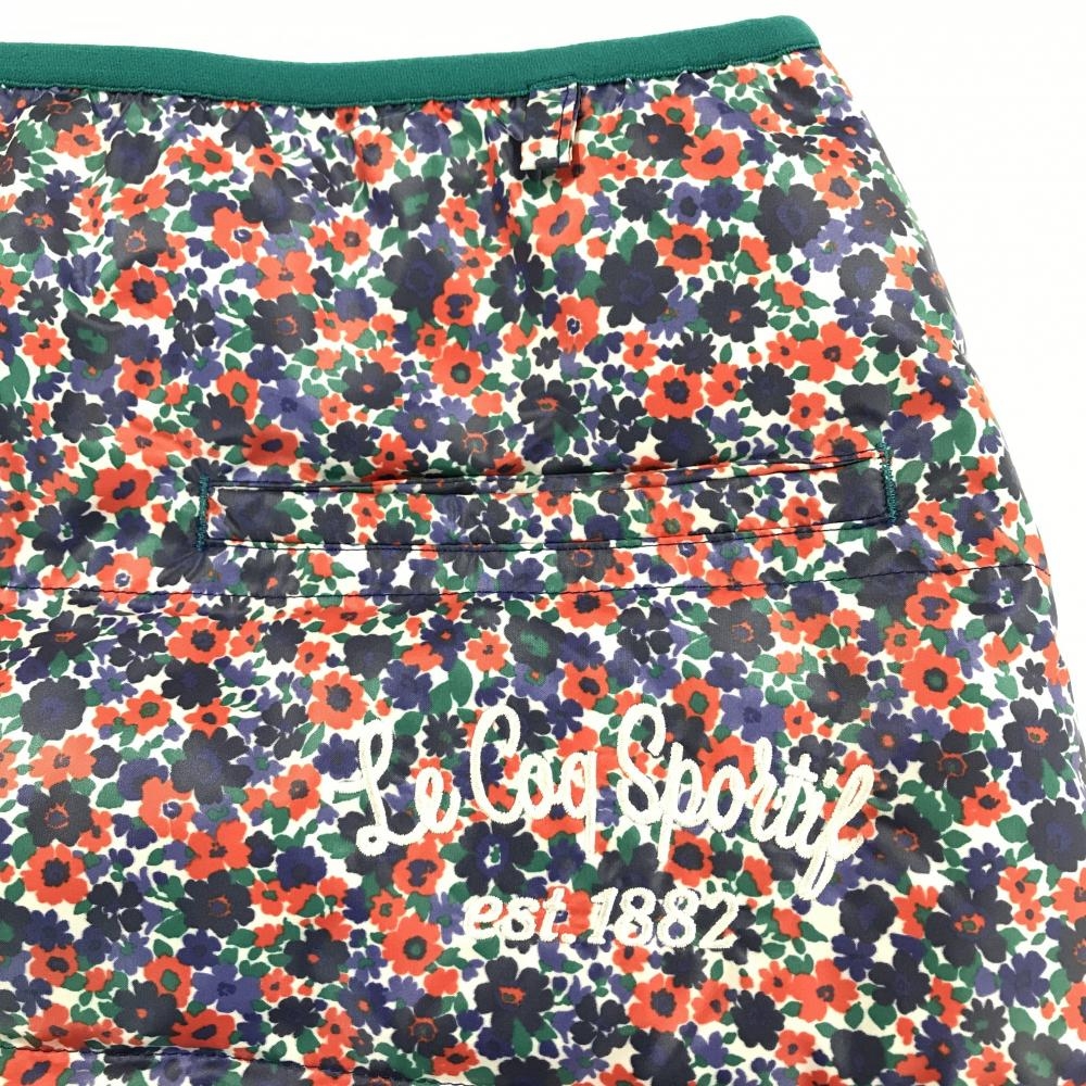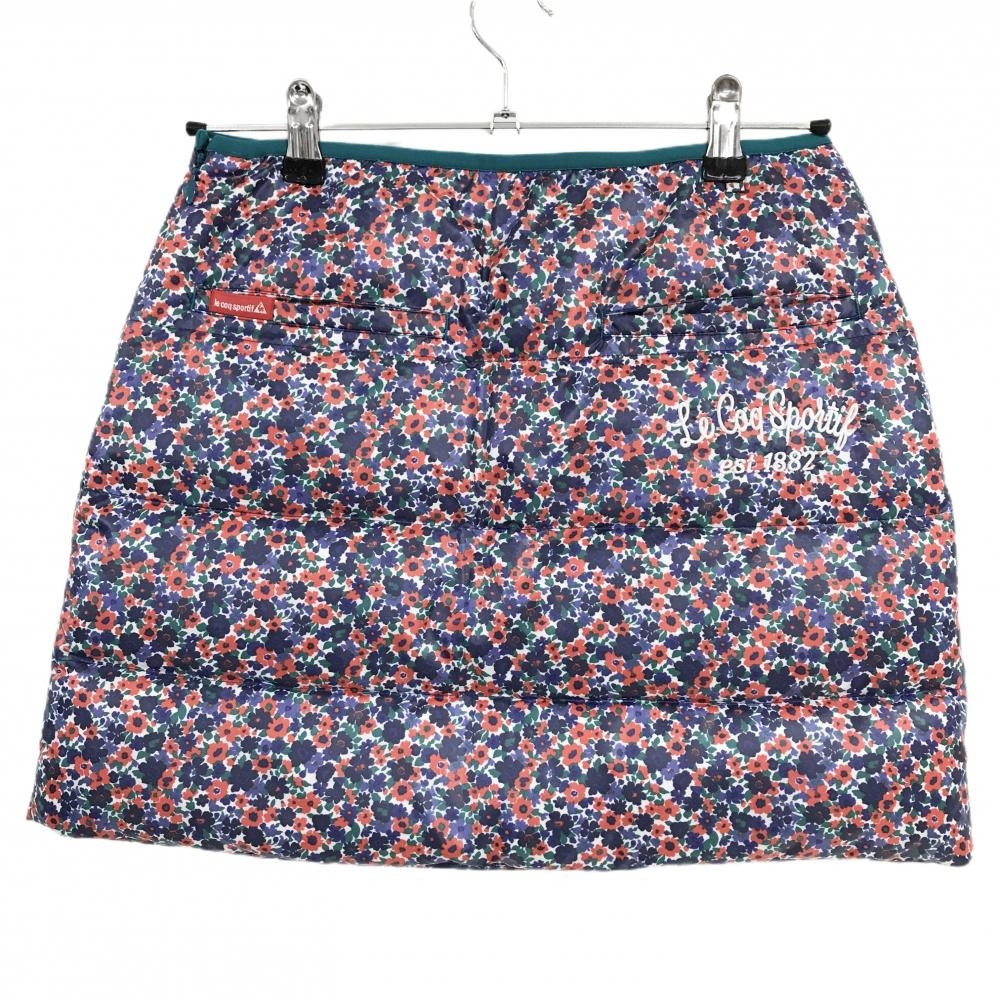 【超美品】ルコック ダウンスカート ネイビー×レッド 小花柄 キルティング レディース 9 ゴルフウェア le coq sportif