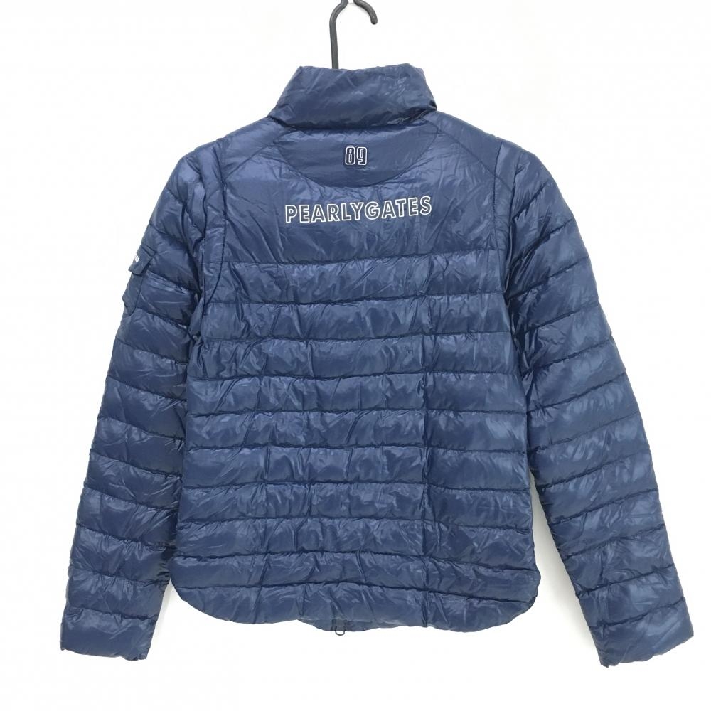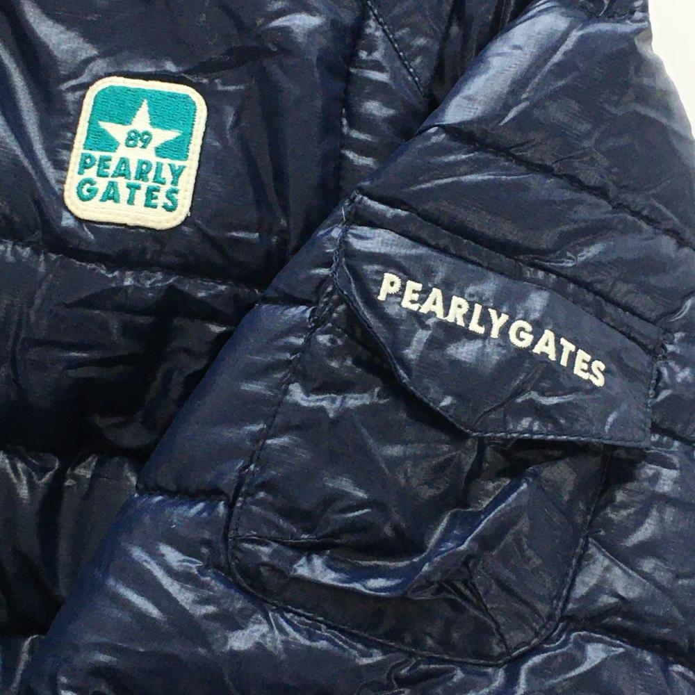 【美品】パーリーゲイツ 2WAYダウンジャケット ネイビー 袖着脱可 収納袋付 レディース 1(M) ゴルフウェア PEARLY GATES
