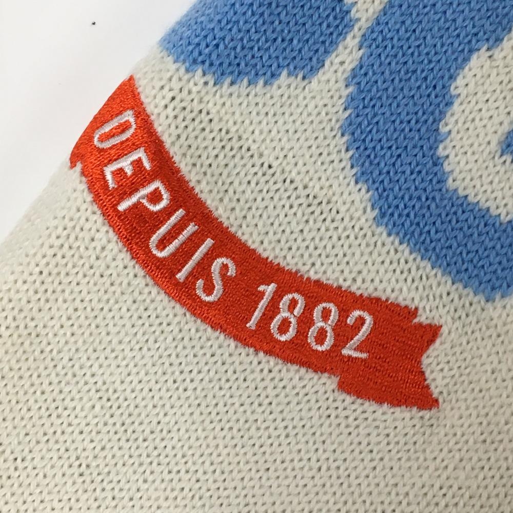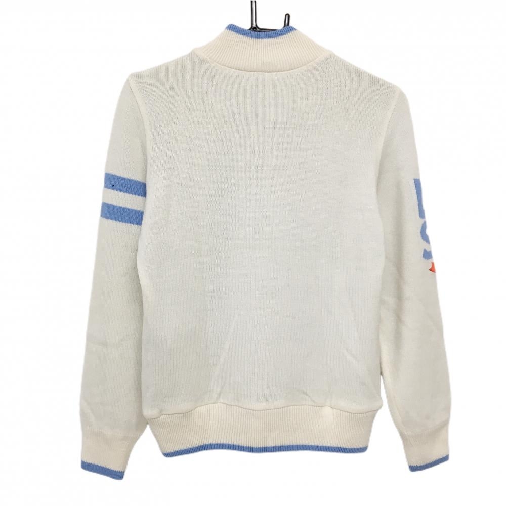 【超美品】ルコックゴルフ 中綿ニットジャケット 白×ライトブルー 前身頃中綿 裏地付 レディース M ゴルフウェア le coq sportif