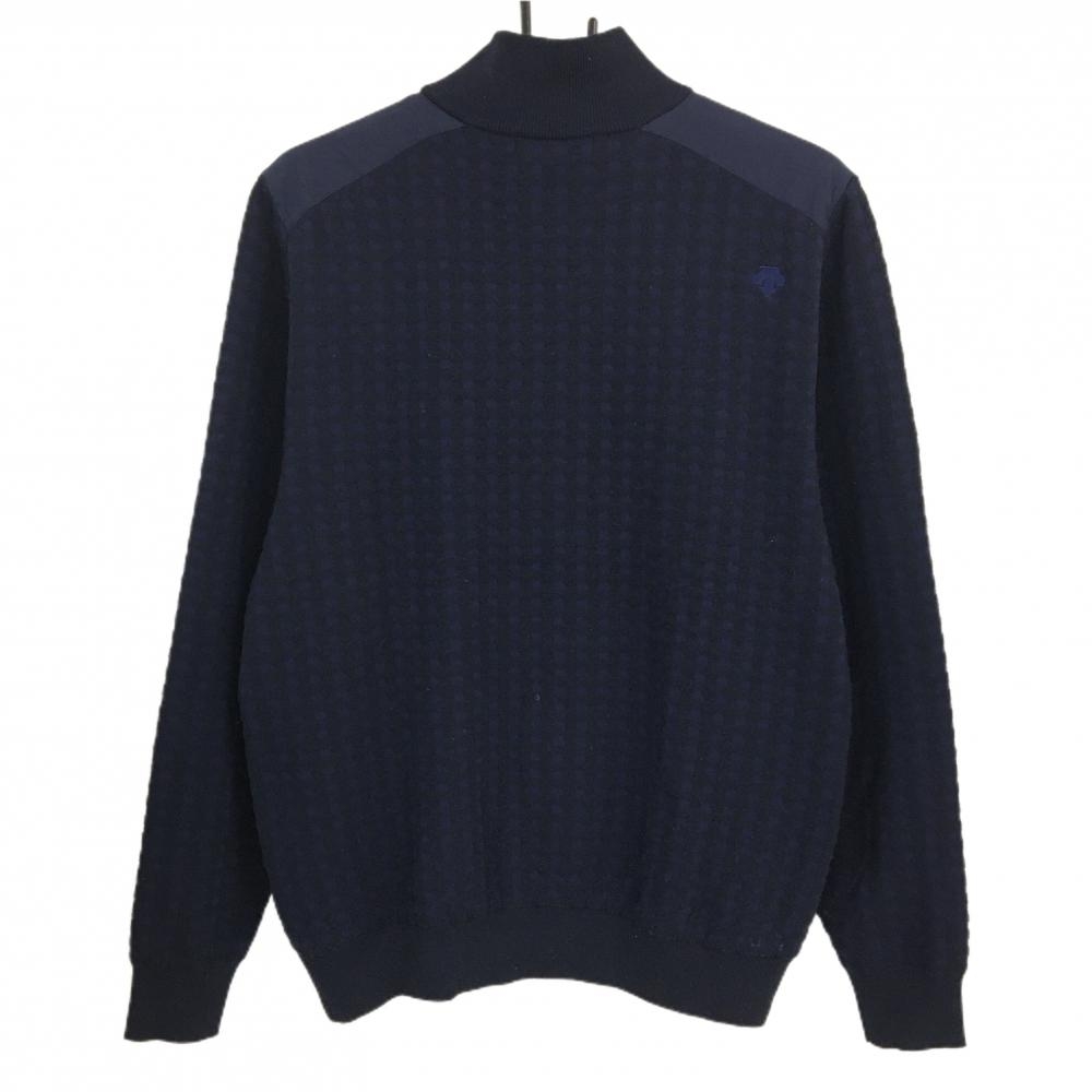 スリクソンバイデサント ハイネックセーター ネイビー 格子編み ニット 裏微起毛 ウール混 メンズ LL ゴルフウェア SRIXON