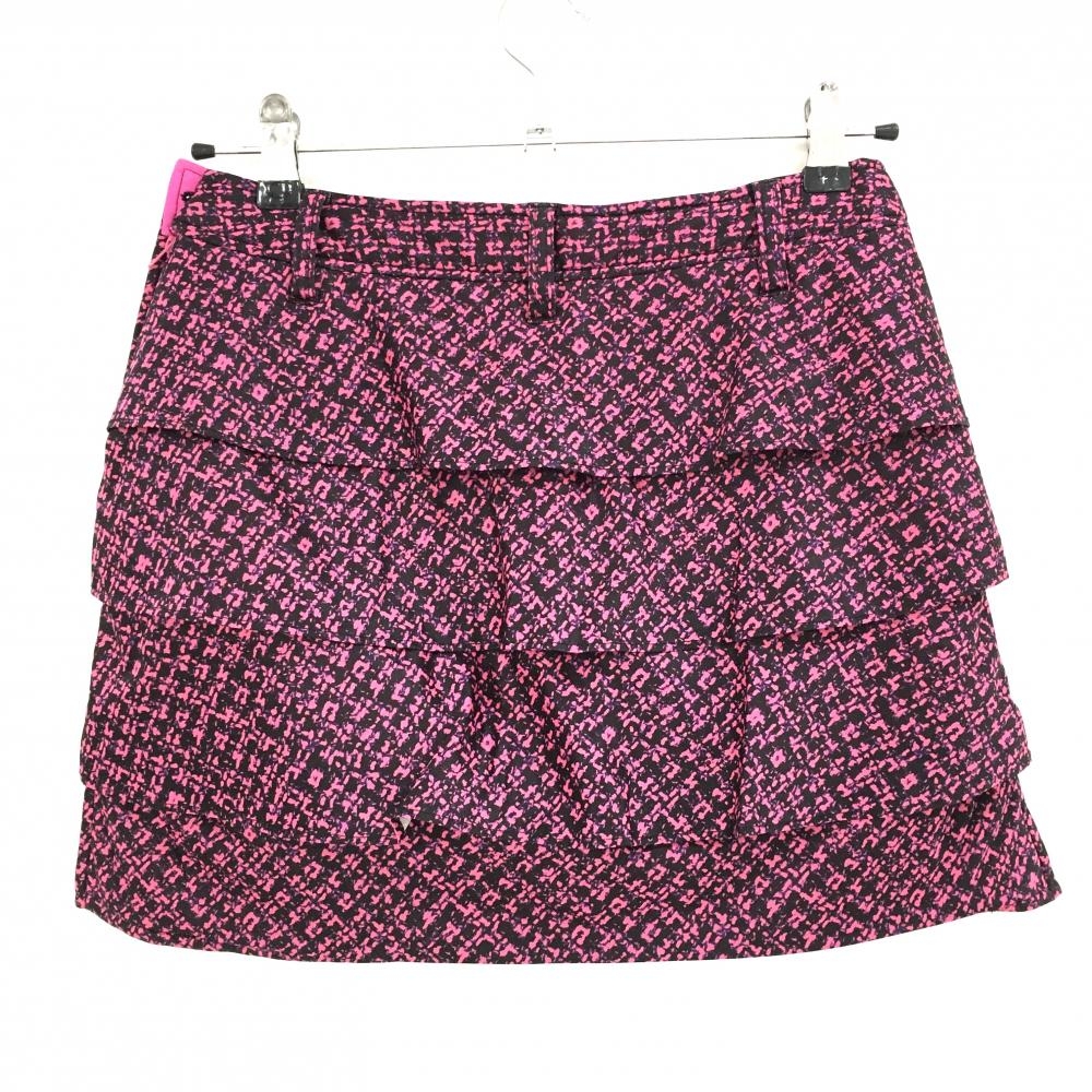 【美品】ビバハート 中綿スカート ピンク×黒 総柄 後ろフリル 内側インナーパンツ レディース 38(S) ゴルフウェア VIVA HEART