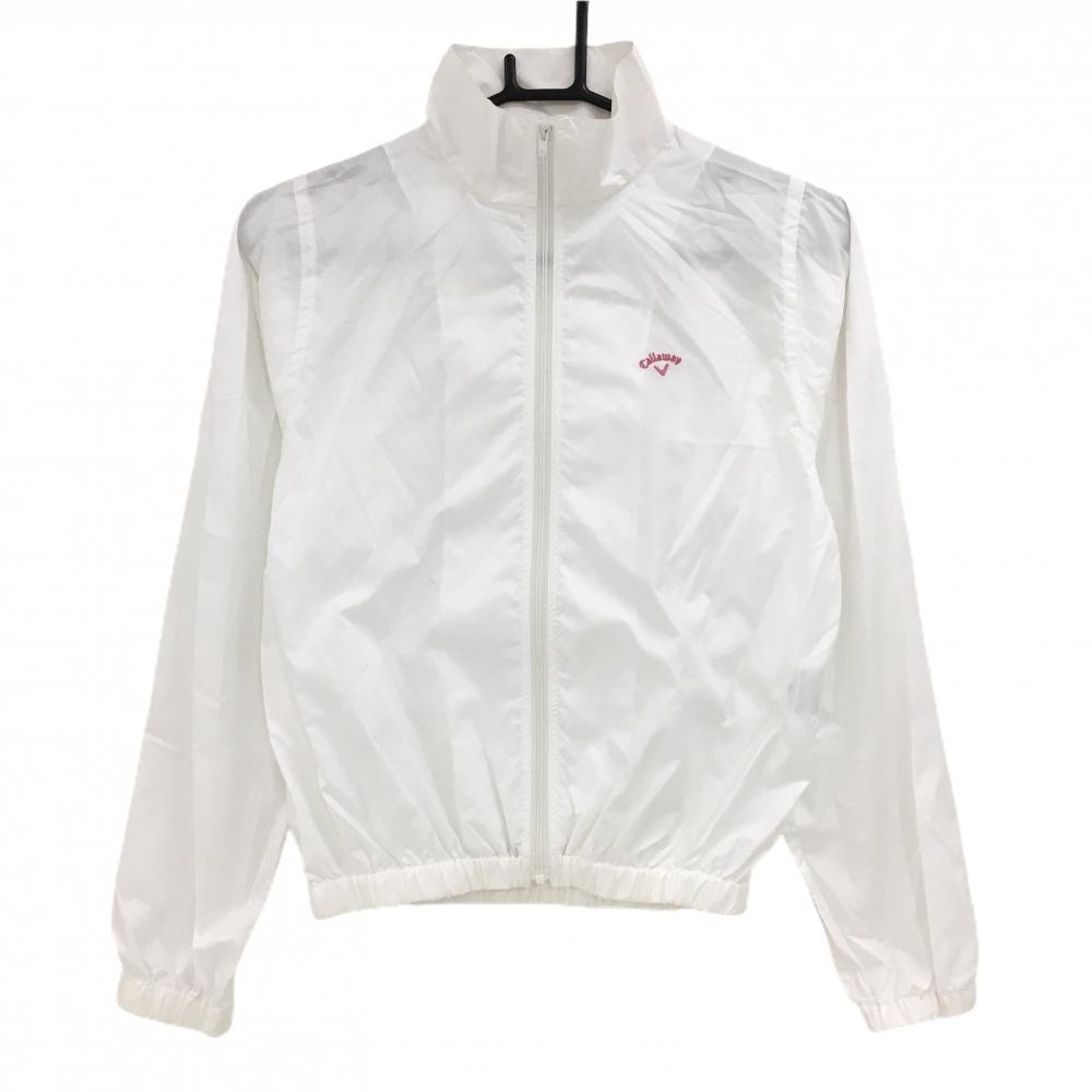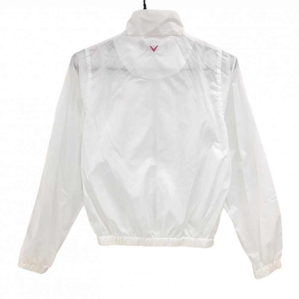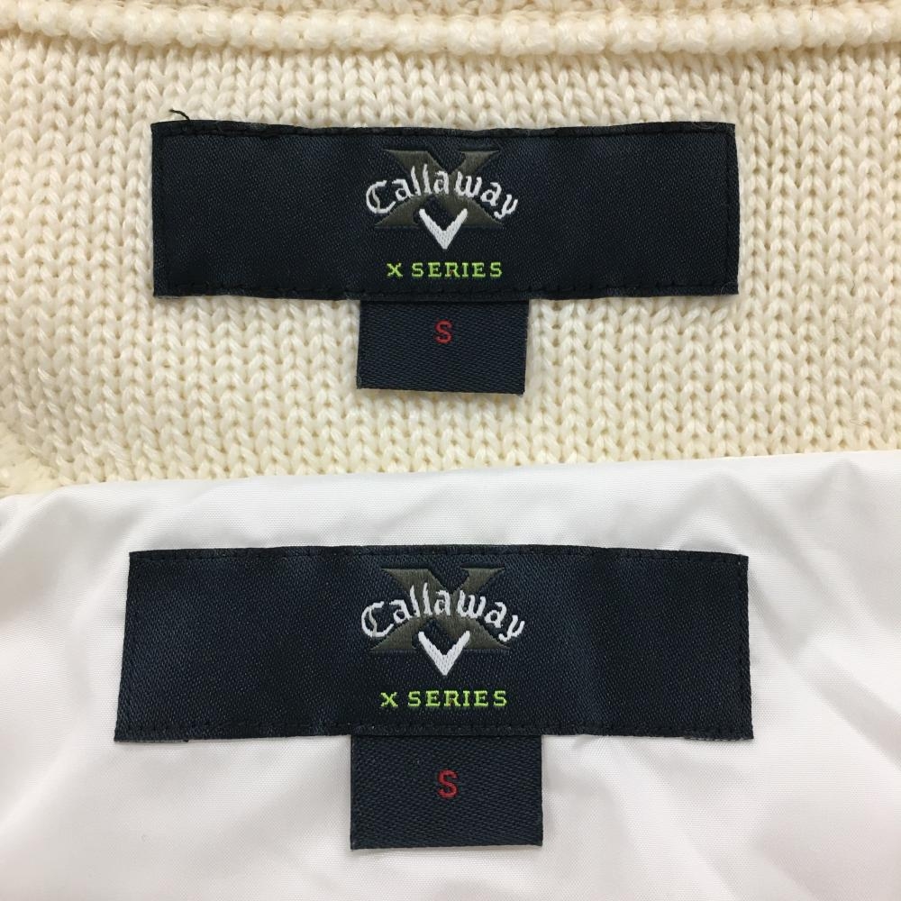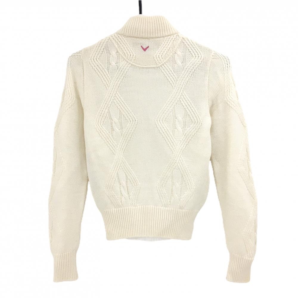 【美品】キャロウェイ インナー付ニットジャケット アイボリー×白 ケーブル編み ウール混 レディース S ゴルフウェア Callaway
