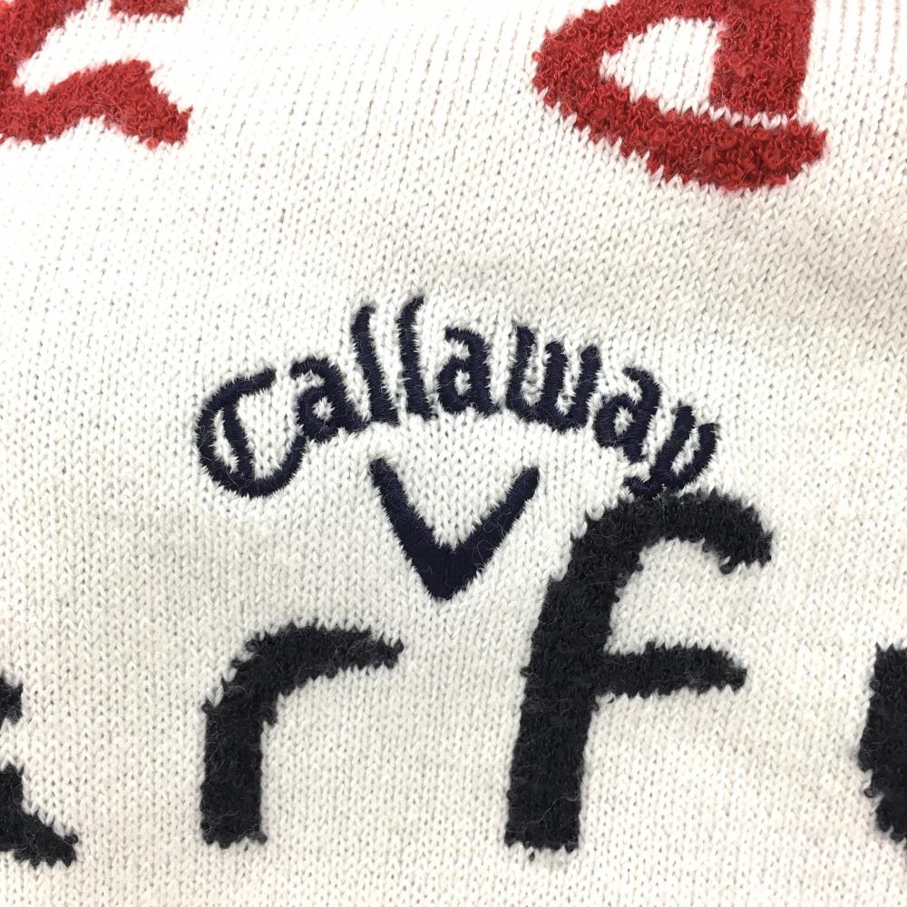 キャロウェイ セーター 白×マルチカラー 英字総柄 Vネック メンズ L ゴルフウェア Callaway