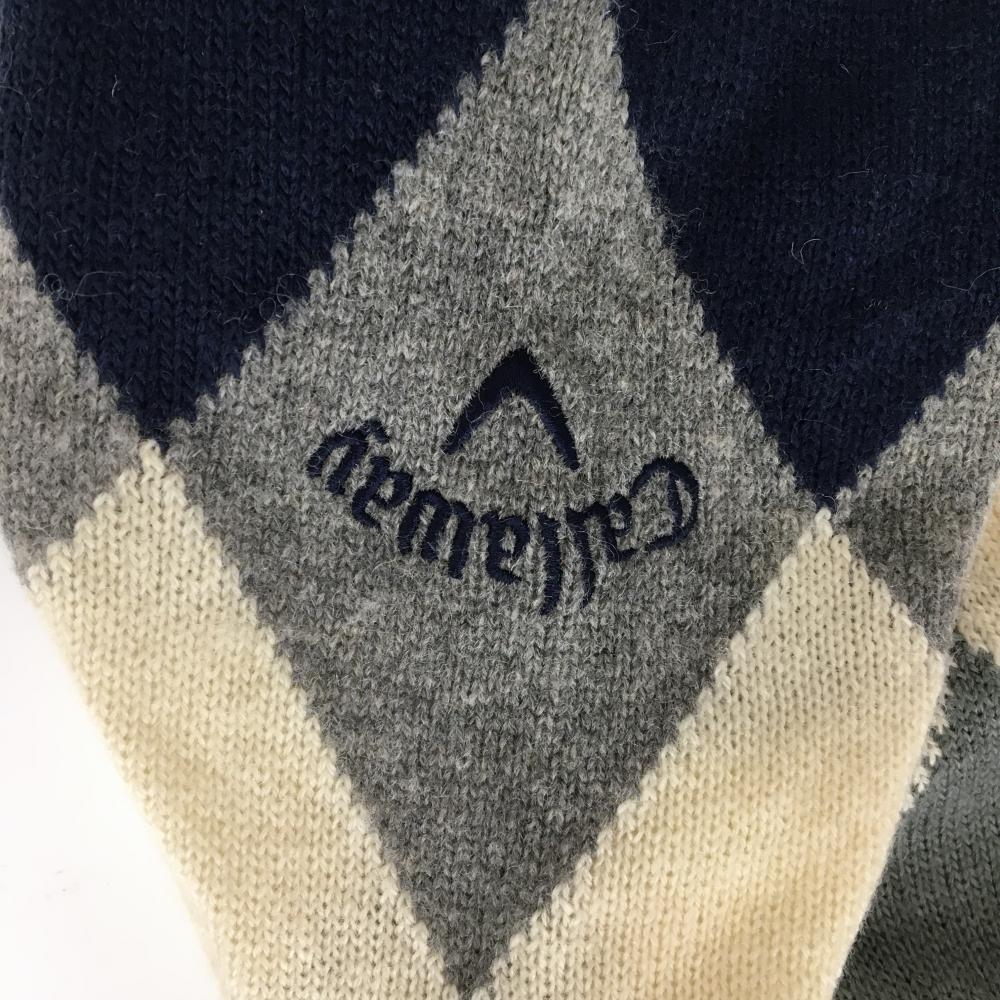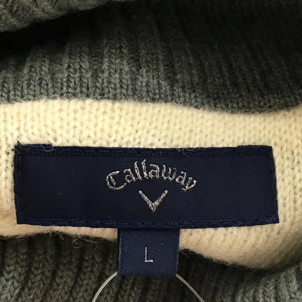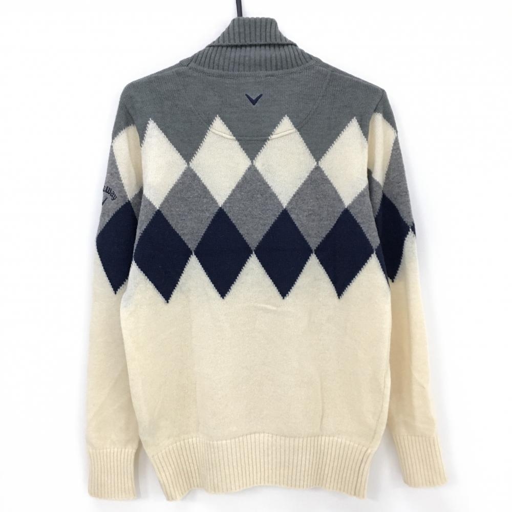 キャロウェイ タートルネックセーター アイボリー×グレー 胸上ダイヤ柄 ウール混 ニット メンズ L ゴルフウェア Callaway