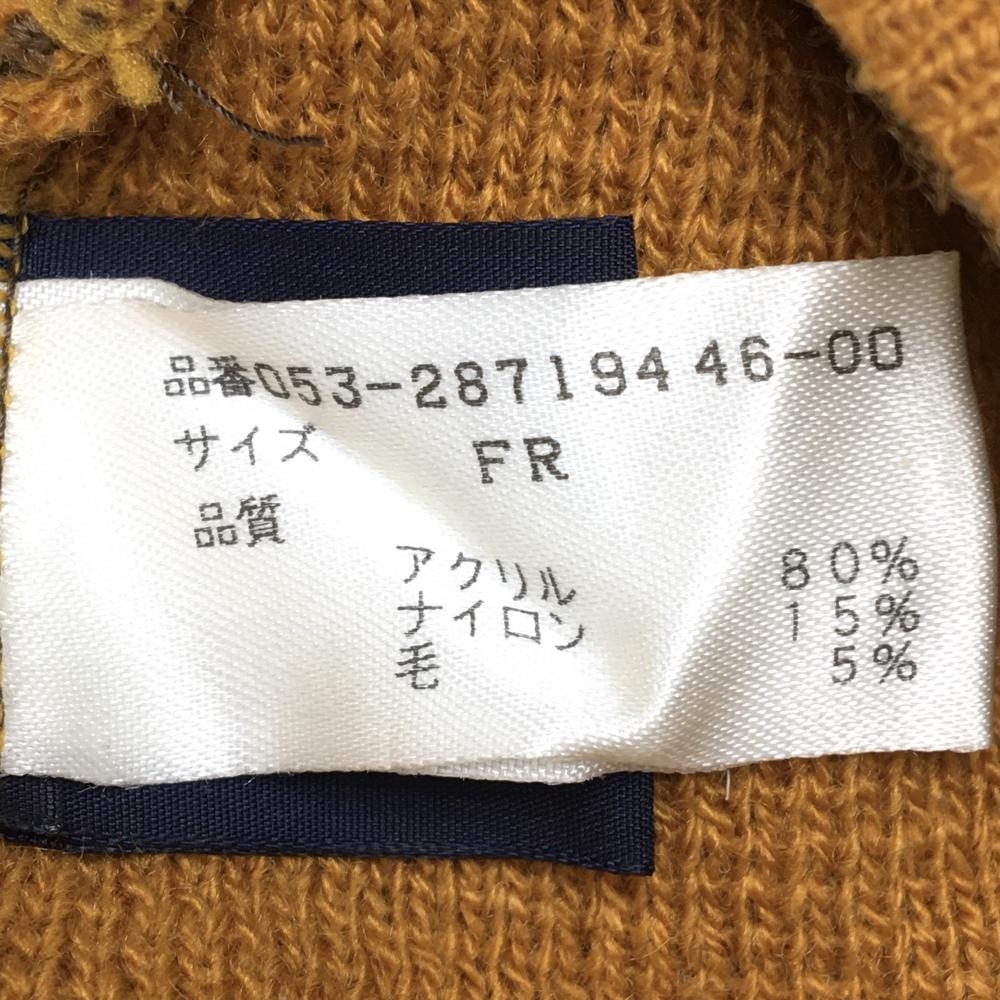 【美品】パーリーゲイツ ニット帽 ブラウン×オレンジ×ボルドー 一部ライン ウール混 レディース FR ゴルフウェア PEARLY GATES