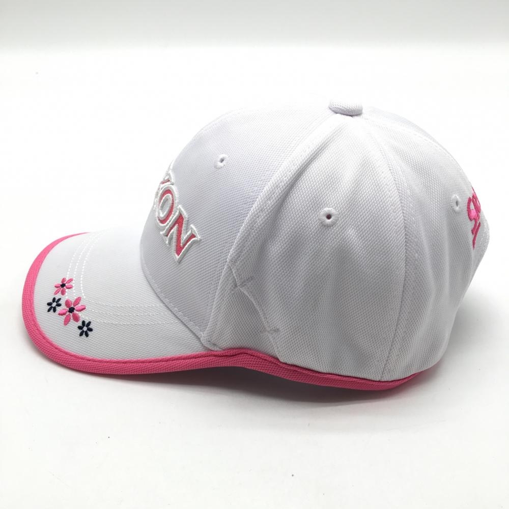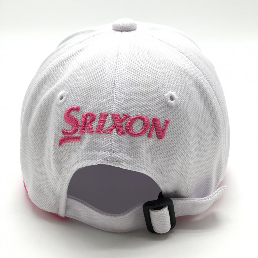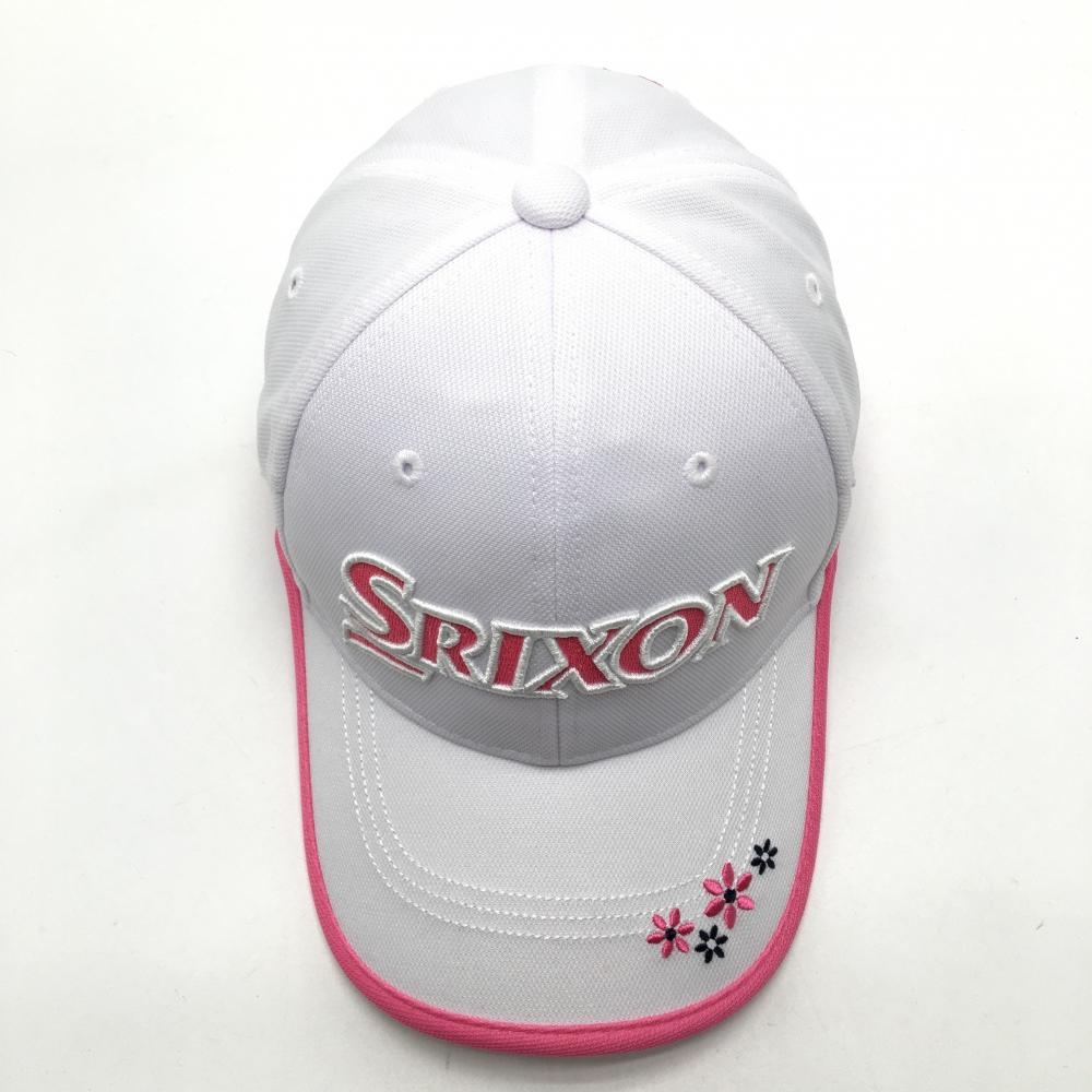 【超美品】スリクソン キャップ 白×ピンク ロゴ 花刺しゅう レディース フリーサイズ(54-58cm) ゴルフウェア SRIXON