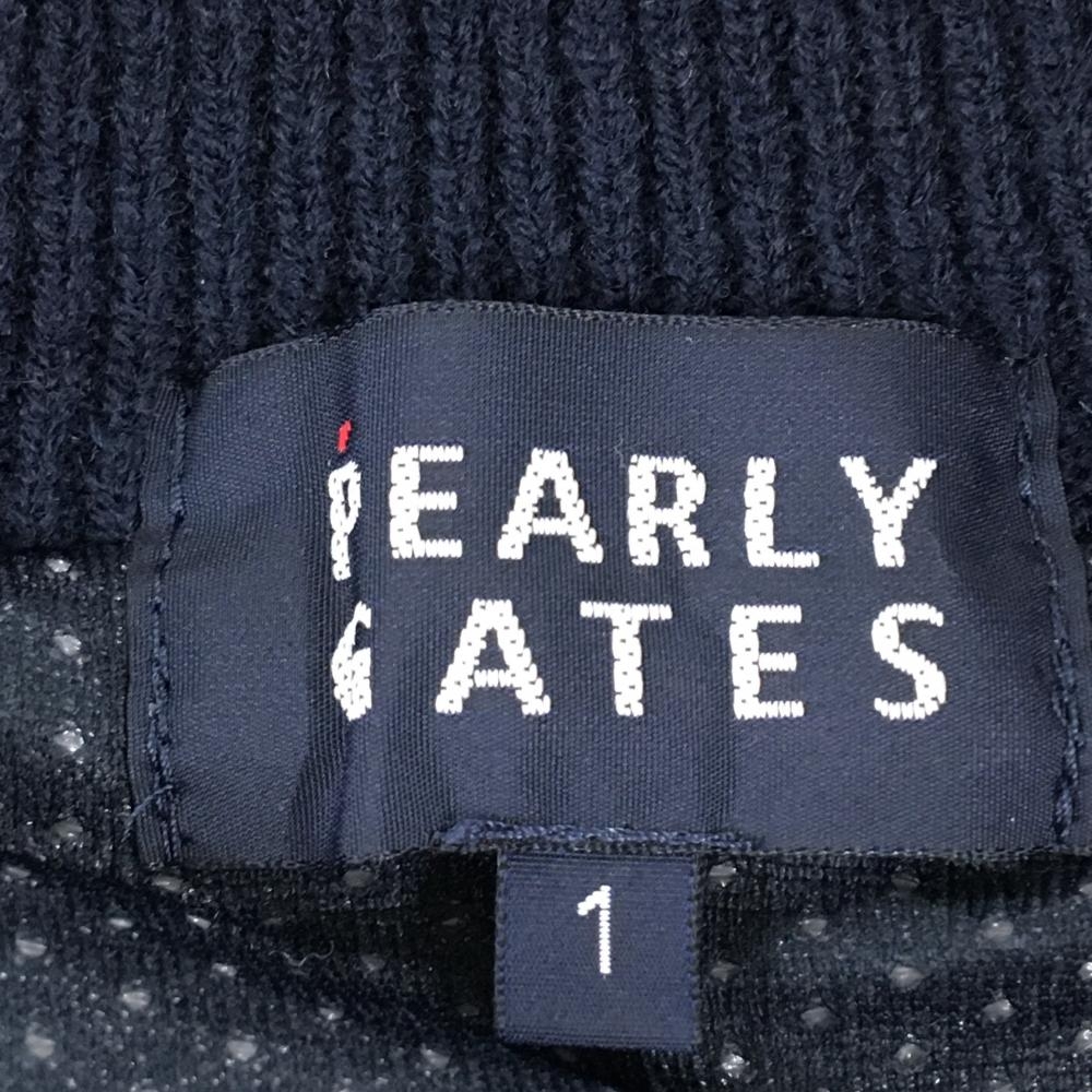 【美品】パーリーゲイツ ニットジャケット ネイビー×白 ウール混 裏地付き レディース 1(M) ゴルフウェア PEARLY GATES