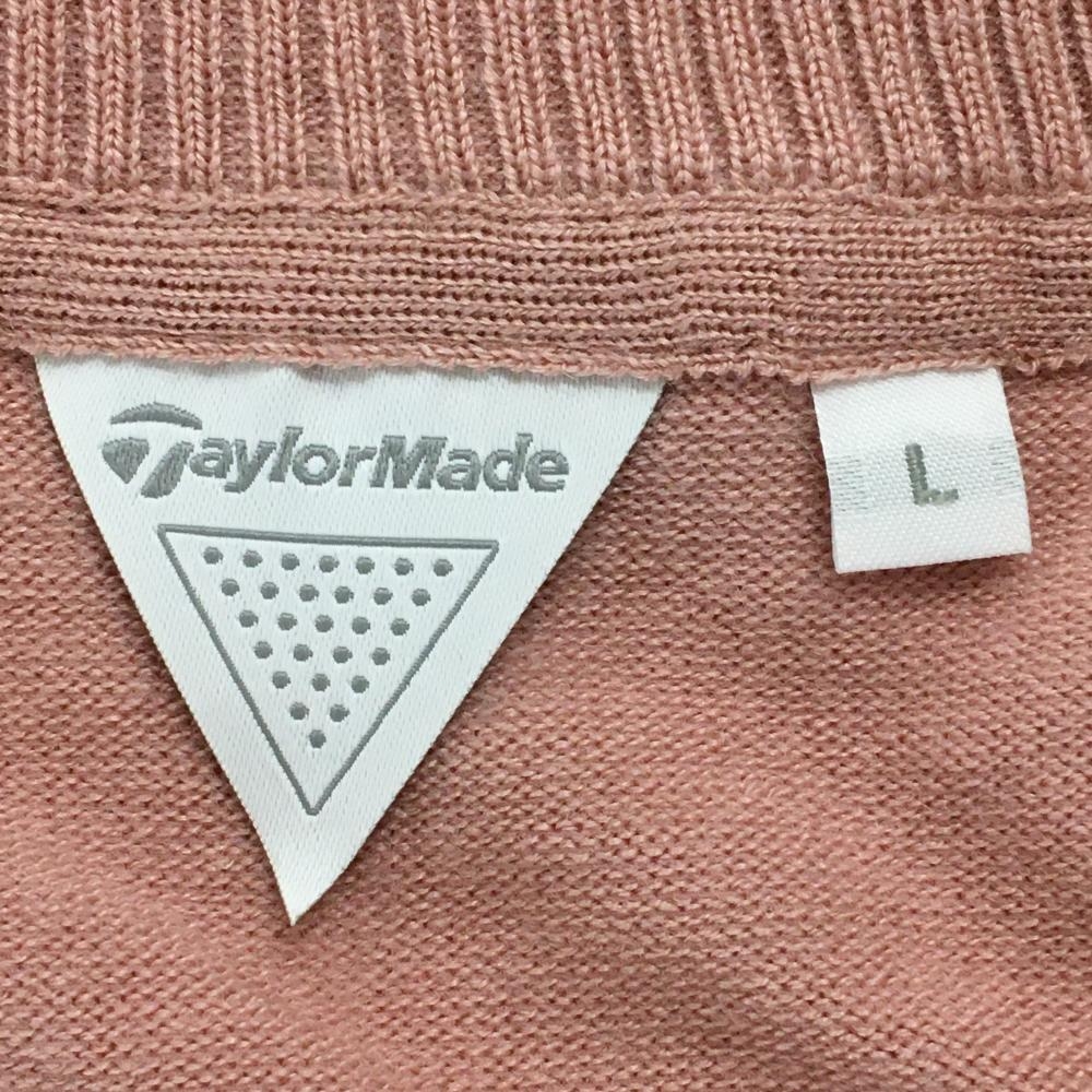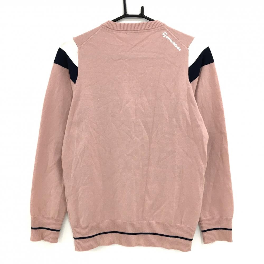 【美品】テーラーメイド セーター スモーキーピンク×ネイビー×白 袖口・裾ライン ウール混 ニット レディース L ゴルフウェア TaylorMade