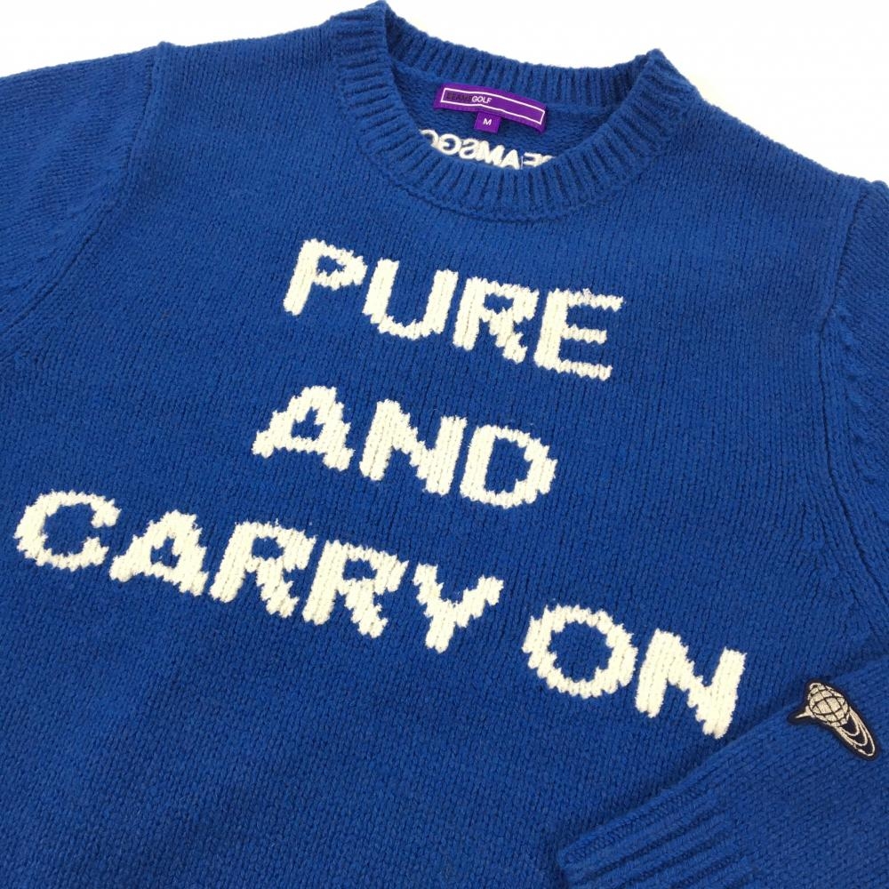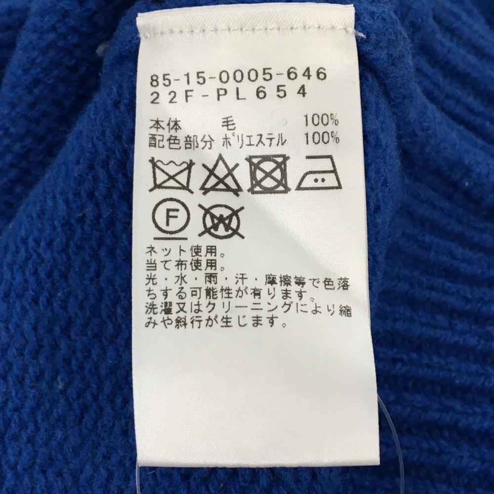 【超美品】ビームスゴルフ セーター ブルー×白 前面ロゴ ウール100% レディース M ゴルフウェア BEAMS GOLF