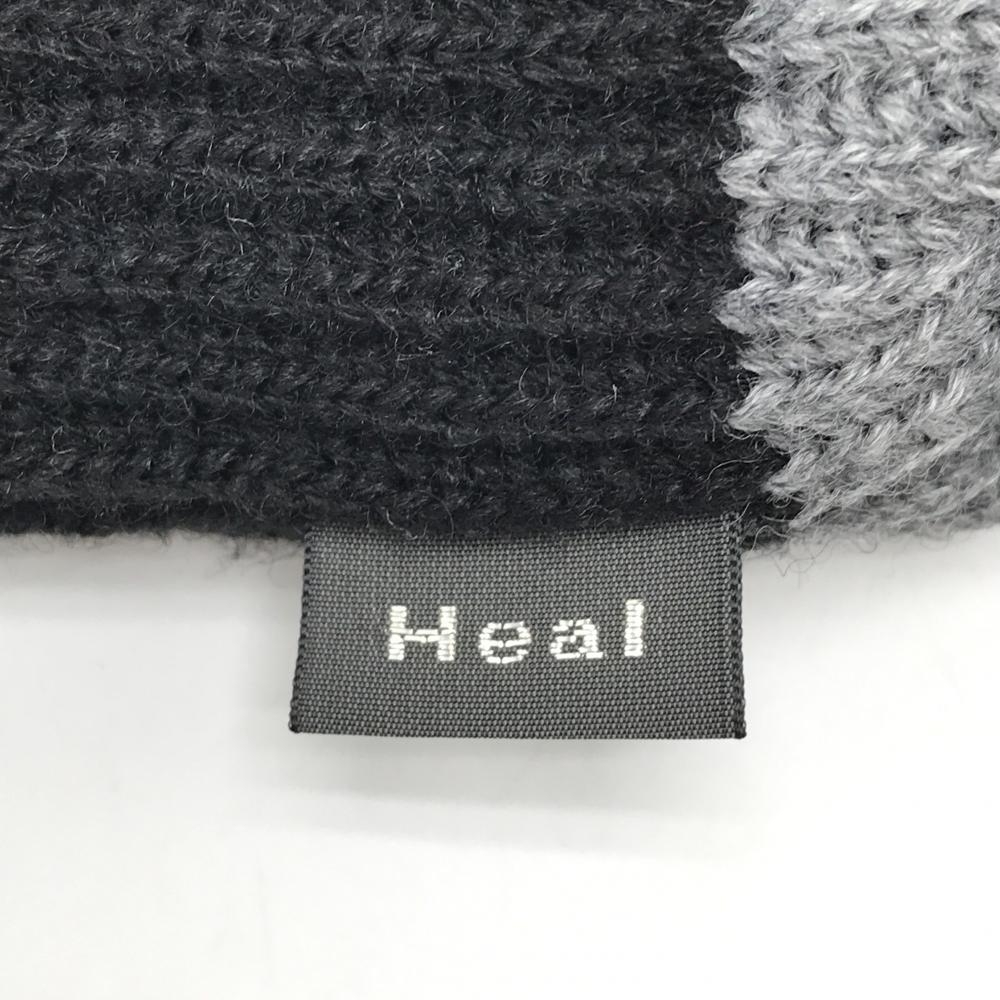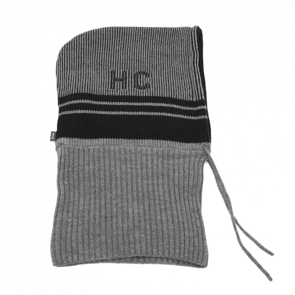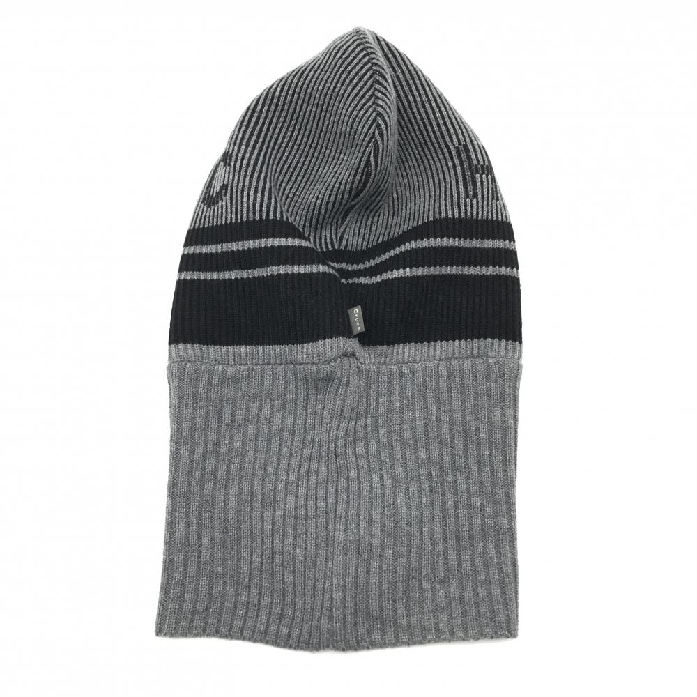 【超美品】ヒールクリーク フード付ネックウォーマー グレー×黒 ストライプ編み メンズ 40(フリー) ゴルフウェア Heal Creek