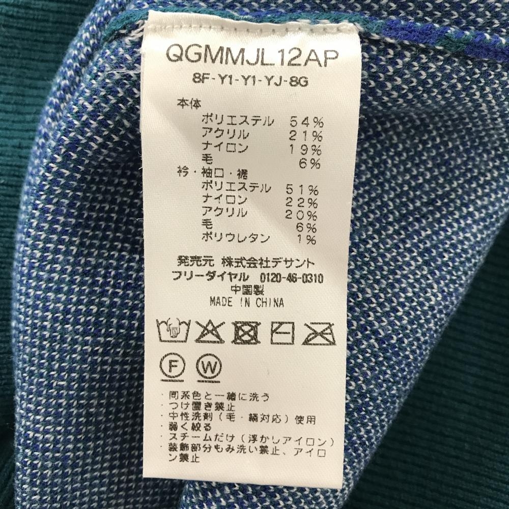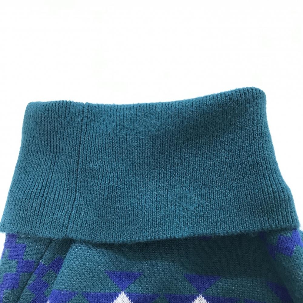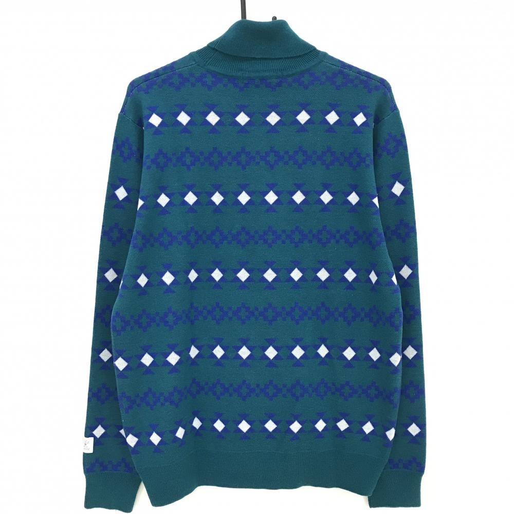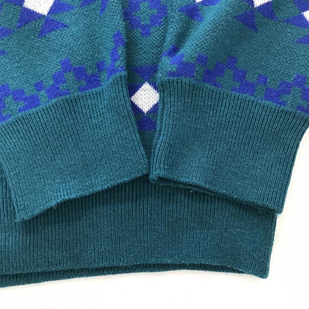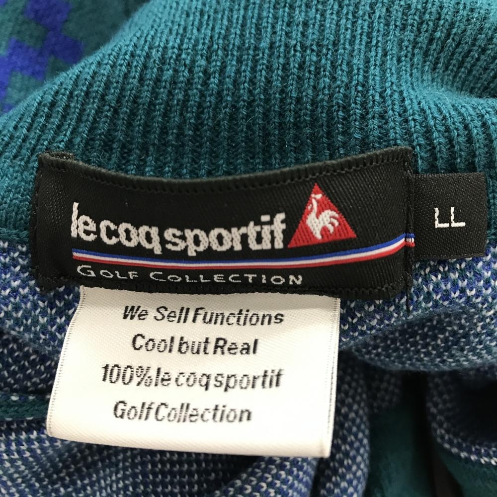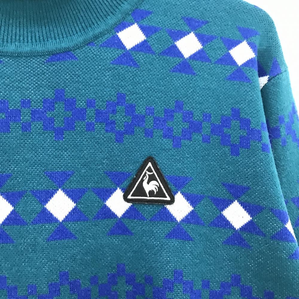 【美品】ルコックゴルフ セーター ブルーグリーン×ブルー 総柄 ロゴワッペン ニット メンズ LL ゴルフウェア le coq sportif