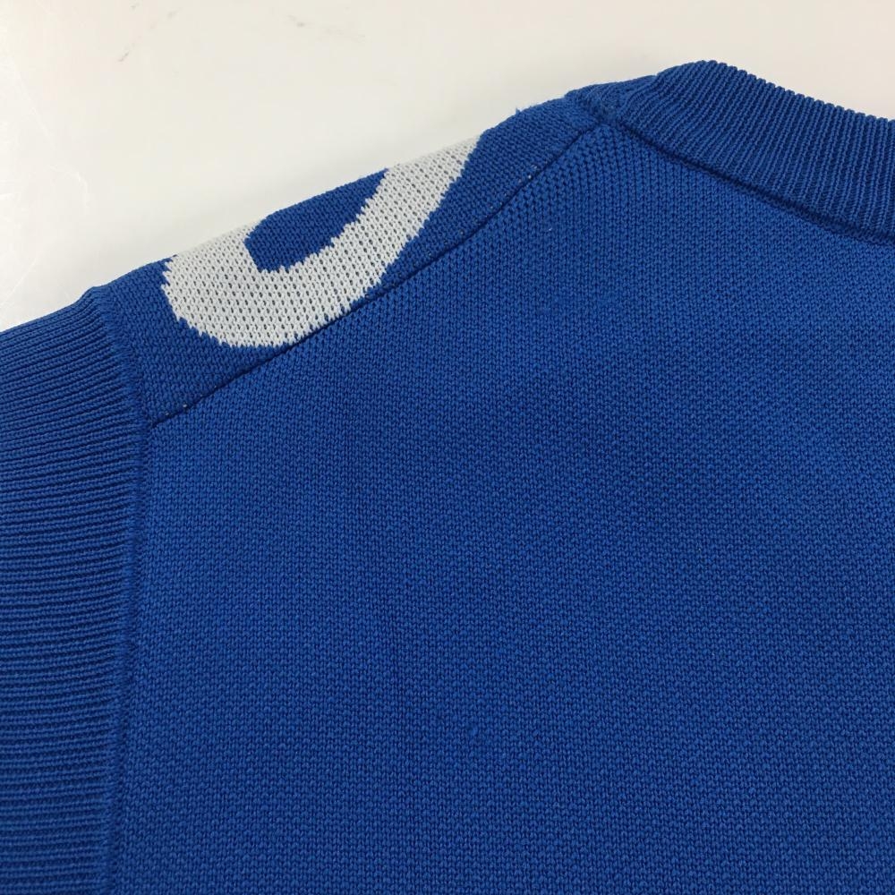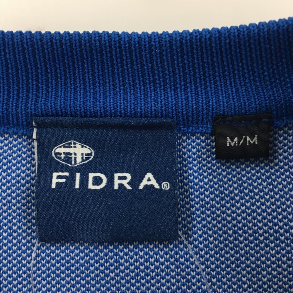 【美品】フィドラ ニットベスト ブルー×白 前面英字柄 メンズ M/M ゴルフウェア FIDRA